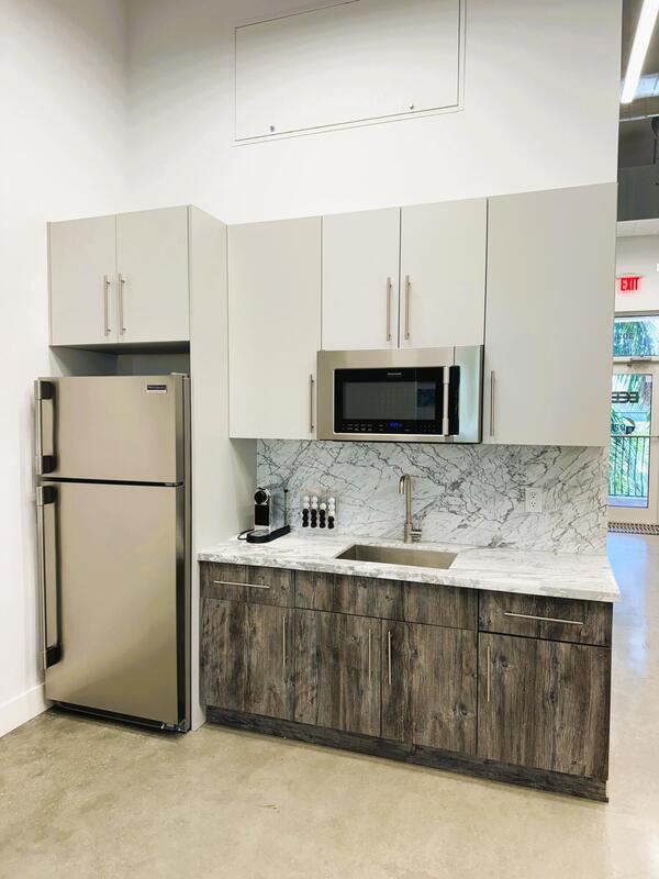 Fantastic executive office space located in Airport Professional Center right off I-95 & Belvedere Road. Complete build-out in 2020 with top-of-the-line materials; custom cabinetry, marble countertops, polished concrete floors, 8' glass, Frigidaire Professional appliances. 12' ceilings in closed space, and 16' in open area. Impact door & windows. Excellent mix of attorneys, physical therapists and many other high end businesses with referral opportunities. Includes 1 assigned covered parking space and ample guest parking. CAM includes Elevator, water and 24/7 security. Perfect for real estate brokerage, law firm, title company, call center & much more...