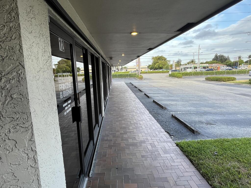 Unit #14 is 15 wide and 48 deep. It has a small area walled off in back for small administration or stock area. This unit would be ideal for phone store, jewelry store, small office etc. Military Trail has 47,000 AADT. Unit comes with box sign over unit as well as placement on street sign. Unit is all freshly painted. Hurricane shutters for all glass. Freshly updated employee only half bath (not handicap accessible). Acoustical dropped ceiling with bright troffer lights - several are new and keep the unit bright and well lit. The unit also has an all glass front for additional natural light. Lots of parking. Nicely landscaped Mediterranean style plaza. 100% central HVAC & heat. Owner allows only one