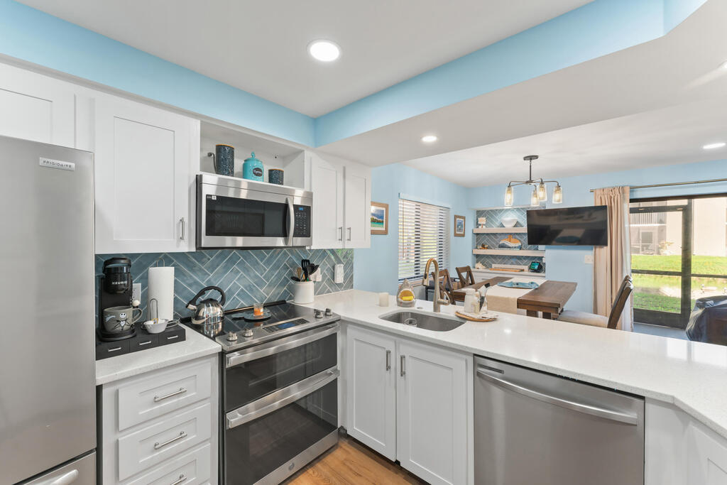 Welcome to your beach-side retreat! This beautifully furnished and updated 2-bedroom, 2-bathroom condo is located just a few blocks from Jupiter's pristine beaches. The interior boasts modern finishes and stylish decor. Each room is thoughtfully designed with comfort in mind, featuring spacious closets and contemporary furnishings.Enjoy a fully equipped kitchen, perfect for whipping up meals after a day at the beach, and a cozy living area ideal for relaxation or entertaining. Situated in the Jupiter Ocean and Racquet Club, you're only minutes away from stunning beaches, local dining, shopping, and outdoor activities. Whether you're looking for a tranquil retreat or an active coastal lifestyle, this property offers the best of both worlds.