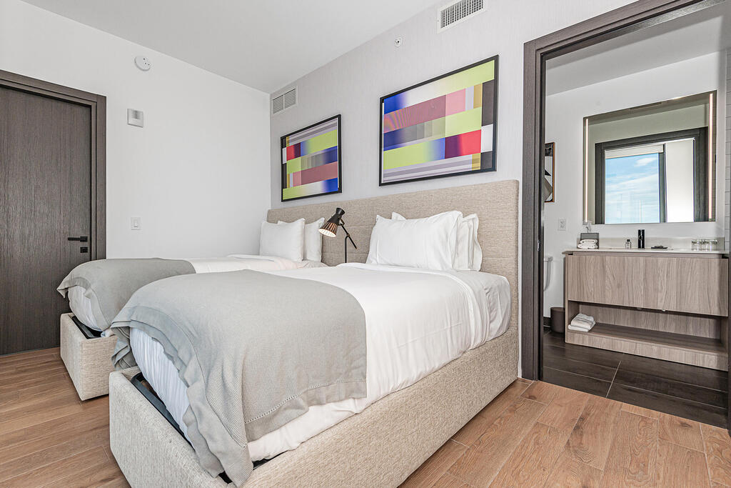 Experience luxury living at The Elser, where style meets comfort. This fully furnished condo features sleek modern furniture, a flat-screen TV, a king-size bed, and a pull-out couch for extra guest space. Enjoy smart living with a thermostat and keyless entry, and soak in breathtaking views of downtown Miami and Biscayne Bay from your high-ceiling unit adorned with designer touches. Amenities include 24/7 concierge service, a wrap-around pool, two-story gym, valet parking, sky lounge, grilling terrace, and more. The Elser's prime location provides easy access to the Kaseya Center, Bayside Marketplace, major roadways, Port of Miami, parks, and public transit.