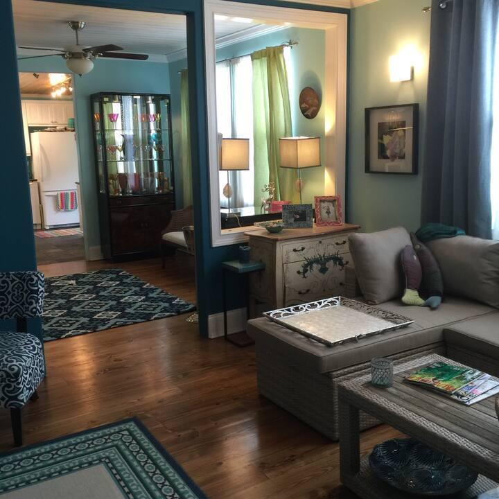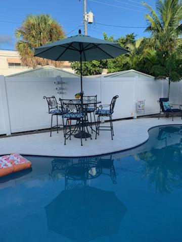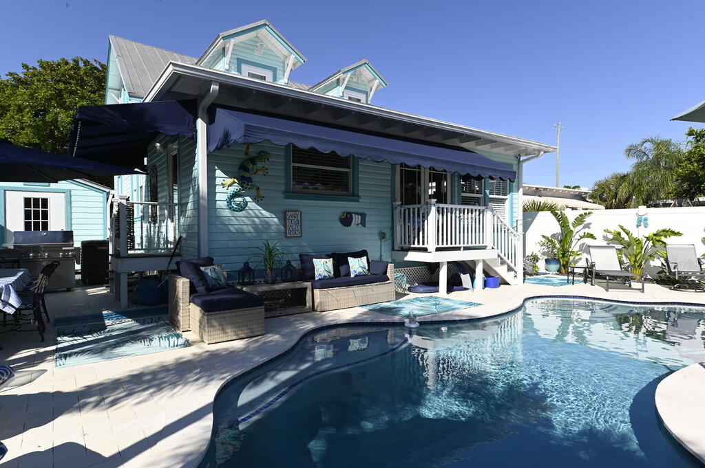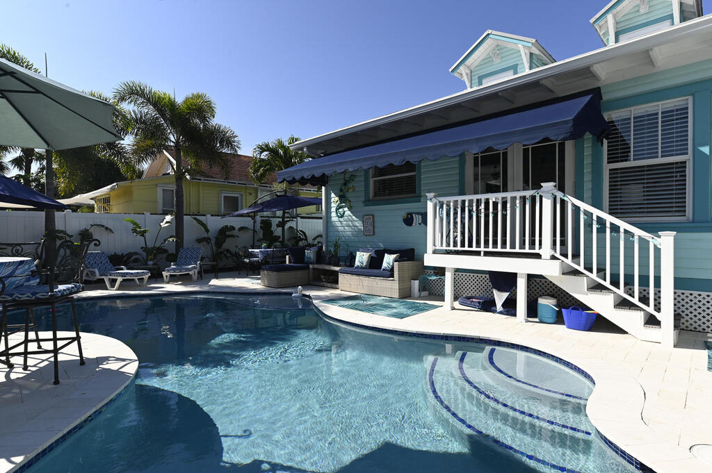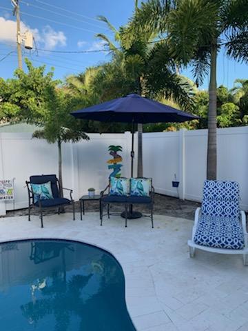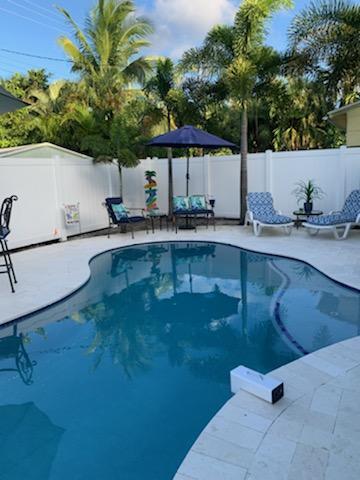 This house is historic house built in 1925 Key West Style Cottage and has been beautifully renovated and decorated to perfection. Has anything that is needed so just bring yourself and your clothes. Everything is new, the windows are hurricane proof, AC, roof is aluminum,& pool. It has an upstairs & a loft where the master bedroom w/king and master bath are situated.There is also a area with a desk. Also futon bed in loft area for 2 people and it is a bedroom with doors that shut. Queen in 2nd bedroom. Double bed downstairs. 2 A/C units, 3TVS w/basic cable service. Has an alarm so if the door opens you will know if your child is trying to go out to the pool.. The house is 1 block from the intercoastal & It's a short walk to Lake Worth. 15 min walk Beach or 5 min drive.