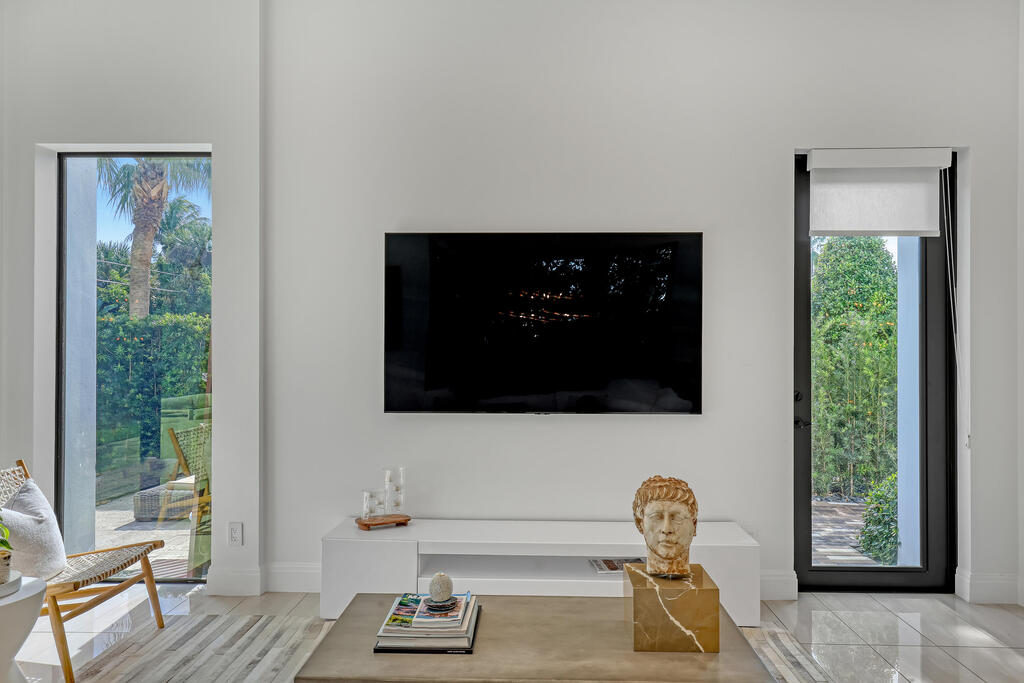 SEASONAL RATES VARY. AVAILABLE NOW. Five blocks from Downtown Delray Beach, this stunning new modern townhome, custom built by Marc Julien Homes and designed by Borrero Architecture, features a well-conceived open floor plan with a great indoor-outdoor flow. Its walled and gated private backyard, landscaped with sea grapes, palms and Podocarpus, features a sun-splashed saltwater pool and patio with an outdoor grill.