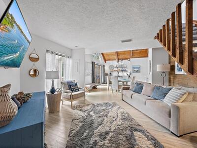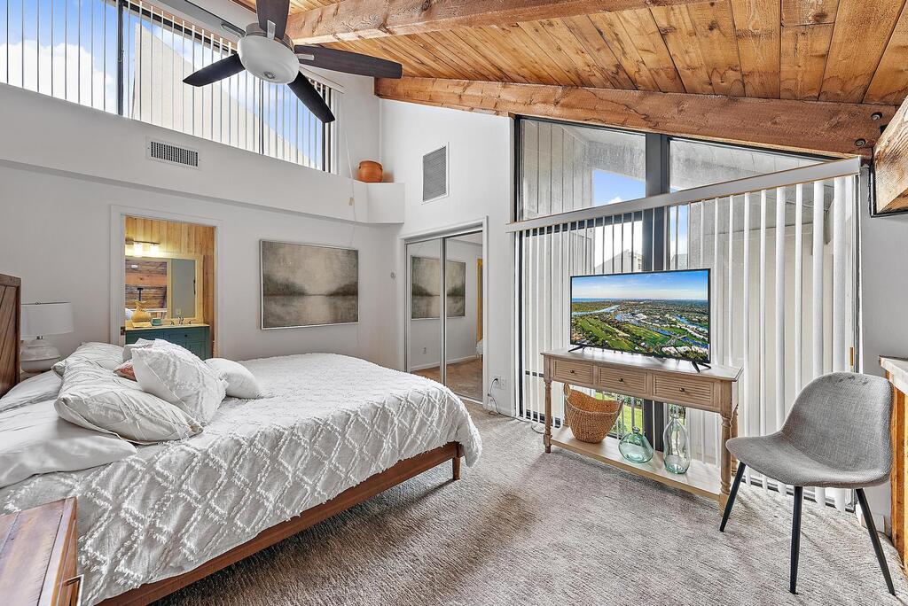 Avail. for OCT-JAN will do 1 Mon. Welcome to your seaside sanctuary! Nestled just steps away from the best beaches Jupiter has to offer. This charming 2-bed, 2-bath loft offers the perfect retreat for your beach getaway. Step inside and feel the coastal vibes as the natural light floods through the airy open-concept living space. The loft's modern design and beachy decor create a relaxing atmosphere. Enjoy the fully equipped kitchen, dining area, updated bathrooms and open air balcony overlooking a private courtyard, where ocean breezes and sunset views await. Primary Suite is equipped with a king bed, walk in closet and updated en suite. First floor bedroom provides the perfect set up for guests w/ en suite & queen sleeper/sofa. On site pools & tennis. Pet friendly- 35l