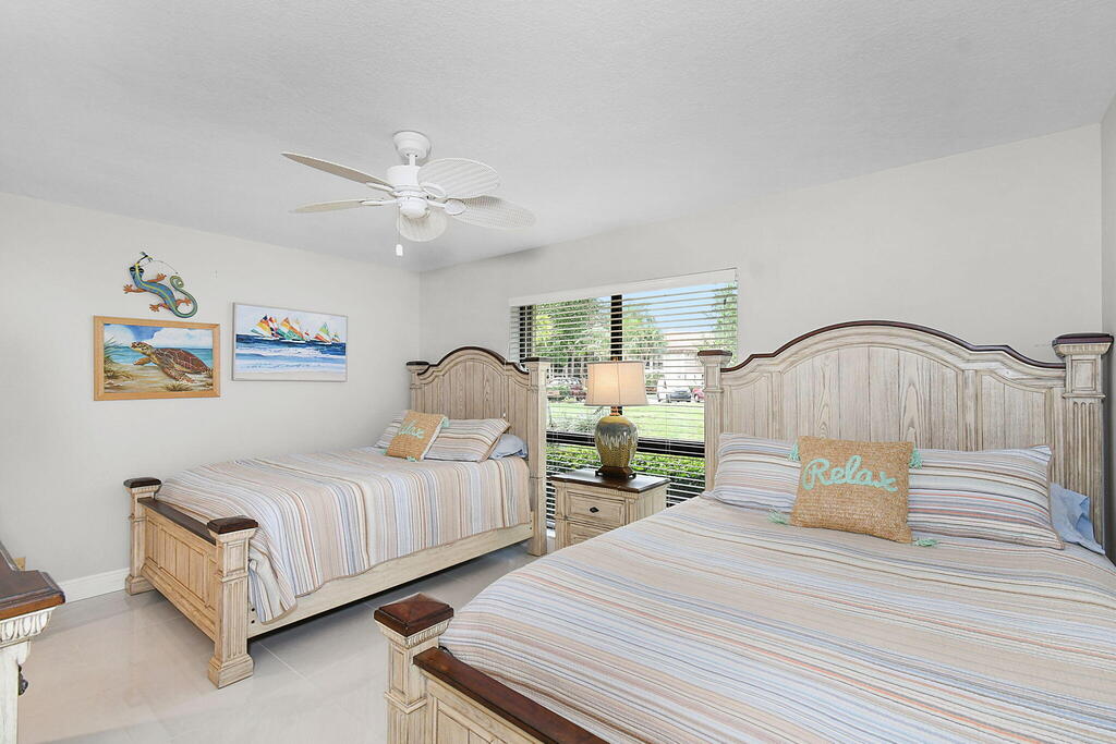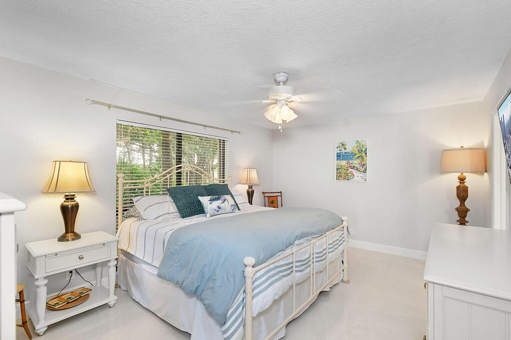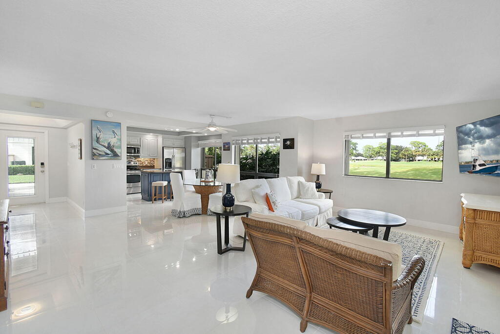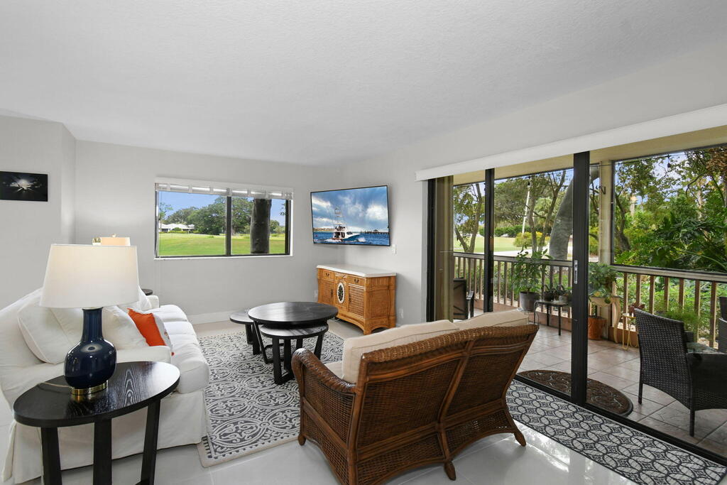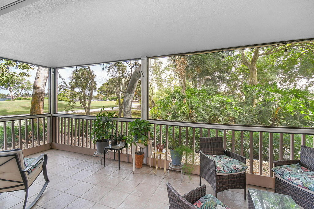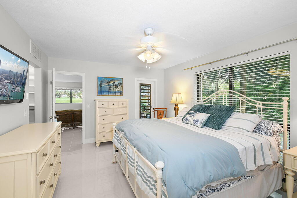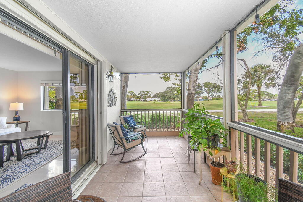 Fully furnished ground floor Golf Villa overlooks the 9th green of Staples short course and filtered views of the Champion driving range. Ideal golf views & shaded patio from the adjacent trees. Updated interior with a beautiful scenic view throughout the living area and great natural light. The master bedroom includes a king-sized bed (with large flat screen TV) and two queen beds in the guest bedroom and a large flat screen TV in the living room. The serene screened outdoor patio is ideal for entertaining or just relaxing with a book. The condo has full sized in-unit washer & dryer. The seasonal rent includes Wi-Fi & basic cable TV, water & sewer and electricity (up to $125/month). One of the 2 community pools is located within 100 yards.