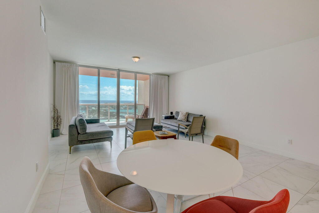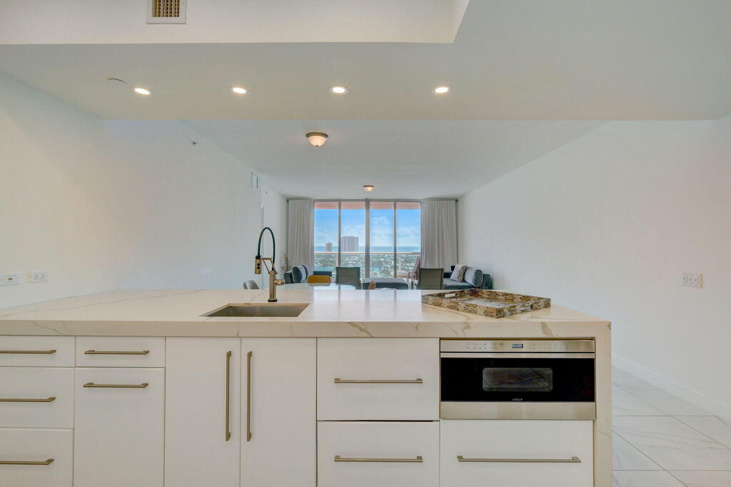 WELCOME TO COASTAL LIVING! This one-of-kind 20th floor retreat situated directly on the widest part of the pristine blue intracoastal, Atlantic Ocean, Singer Island, boating harbor and nighttime city lights. Unique 2 bd. 3 ba. home plus large den/3rd bedroom has endless upgrades, meticulously designed contemporary white kitchen with newer upgraded appliances: paneled Thermador refrigerator and dishwasher, induction cooktop, Wolf microwave, Bosch oven, extra storage, long counter height quartz island, perfect for entertaining, large master suite with 2 walk-in closets, walk out of your 9ft impact floor to ceiling sliders to enjoy morning sunrises, sea life, and boaters from your private balcony, remodeled Inside laundry room for your convenience,
