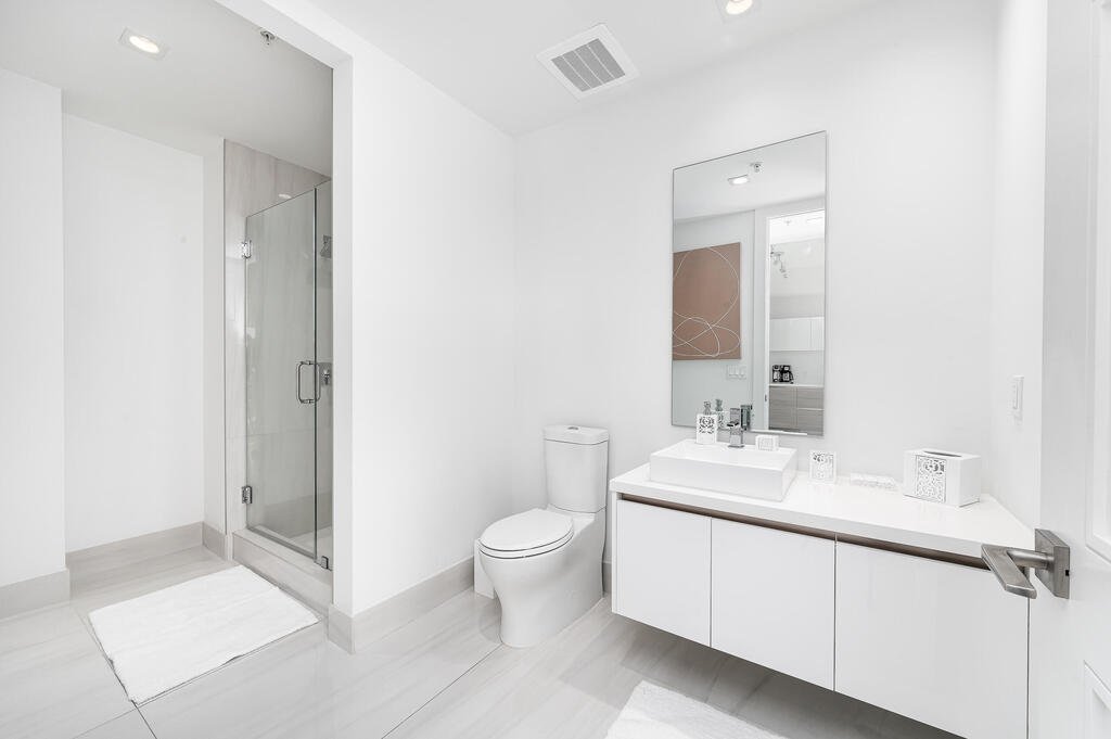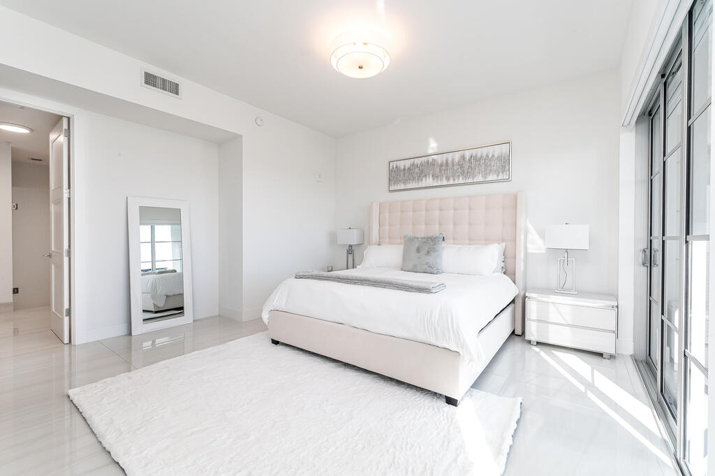 FULLY FURNISHED and TURNKEY. High Floor South East Corner 2-Bedroom Rental in Tower 155 with Stunning Ocean Views! This Fully Furnished beautifully appointed residence has roughly 2,000 total square feet with fantastic natural light and beautiful views. Great open concept floor plan with upgrades throughout. Italian porcelain tile floors, 10-foot ceilings, Chef's kitchen with handmade Italian cabinetry, Quartz counters, and top-of-the-line Bosch appliances with double wall oven, center island and custom waterfall feature. Spacious master suite with walk-in closet and luxurious bathroom featuring a dual sink floating vanity and high-end fixtures. Walk in laundry room with a lot of storage. Built-out closets and motorized shades.