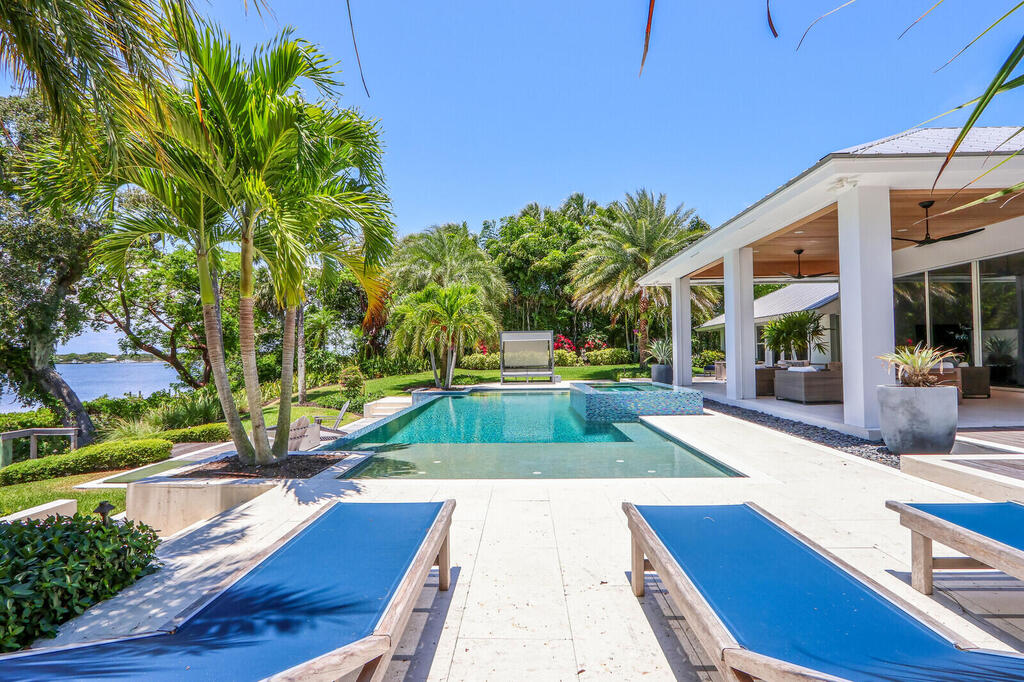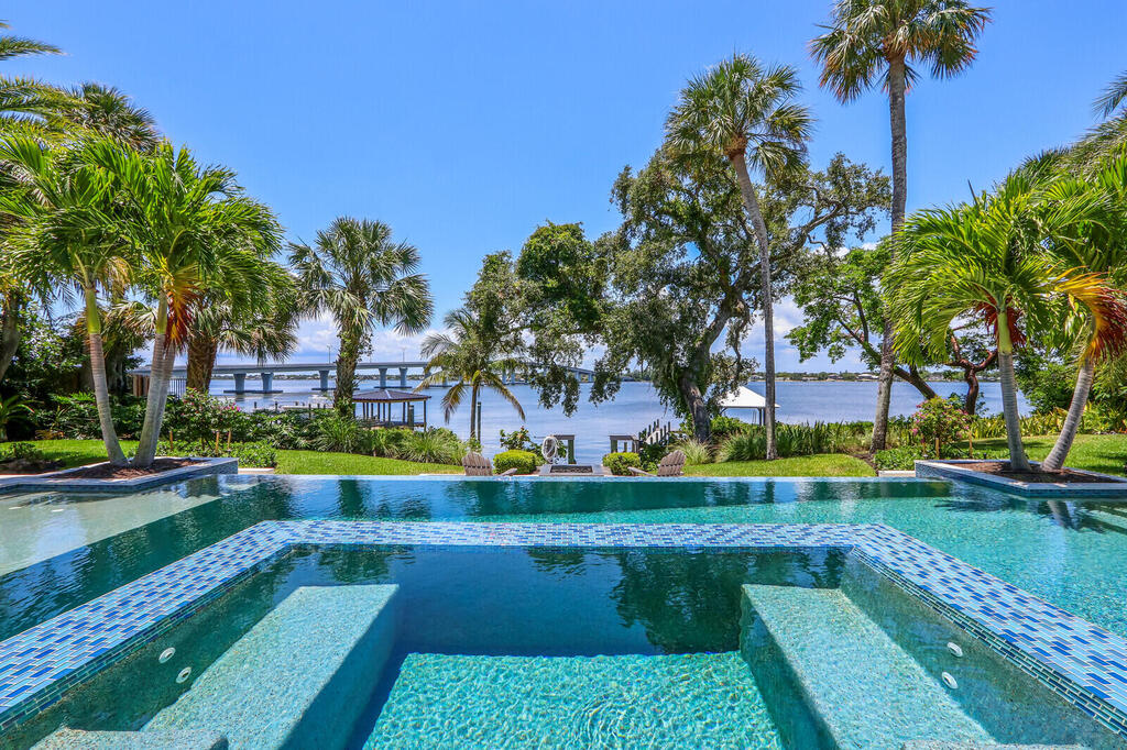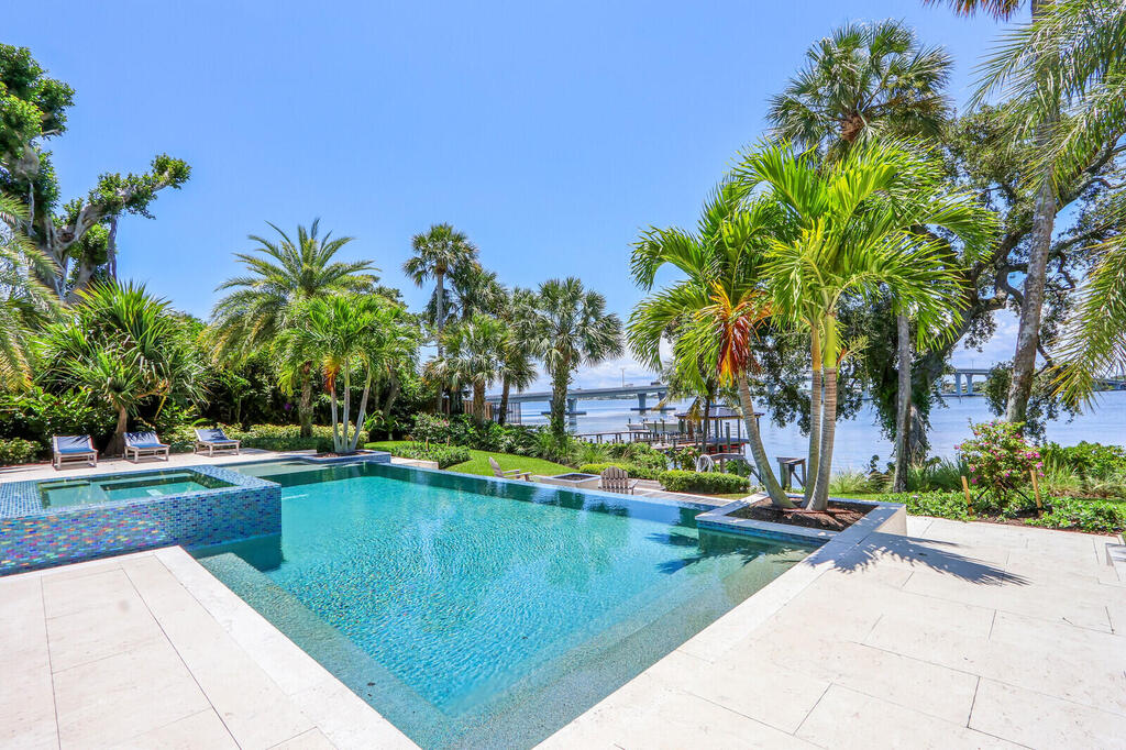 PRICE REDUCTION ON THIS AMAZING SEWALLS POINT WATERFRONT HOME WITH GUEST COTTAGE!!! This stunning waterfront home in sought after Sewalls Point with 20 ft. elevation and amazing sunsets will not disappoint. With 3 Bedrooms/3 Bathrooms, this open concept home looks out over the infinity pool and hot tub, the oversized electric screened lanai, the fire pit & the St. Lucie River. Drive your boat ( up to 28') up to this deep water dock with covered boat lift. Just a short boat ride to the inlet and the sandbars! A lucky friend can stay in the adorable 1 Bedroom/1 bathroom guest cottage complete with washer/dryer & oversized bar refrigerator. This home is conveniently located about 2 miles from Stuart Beach and about 10 minutes to downtown Stuart. Available summer 2025 May 1-Nov 31