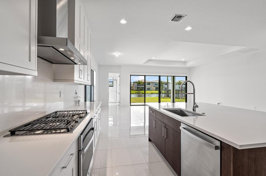 A resort-style lifestyle awaits at this exceptional Samoa model property in the highly sought-after Lotus Palm community. This four-bedroom, with a den/office that can easily be converted into a fifth bedroom, and five and a half bathroom gem spans 4,094 +/- total square feet and is thoughtfully designed for both sophistication and comfort. The open-concept great room creates a seamless flow between the living, dining, and gourmet kitchen areas, making it ideal for entertaining and everyday family life. High-end finishes, including large-format porcelain tile, Shaker-style cabinetry, quartz countertops, and Dacor stainless steel appliances featuring 36-inch refrigerator and freezer columns elevate the property's contemporary flair.