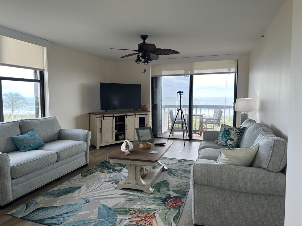 Annual or Seasonal: Beautifully furnished oceanfront condo. Enjoy breathtaking ocean views from every room in this stunningly renovated and thoughtfully furnished 5th floor condo in Hutchinson Island. Located near popular restaurants, shopping centers, downtown Fort Pierce, and the weekly Farmers market, this unit provides both convenience and tranquility. Start your day with a cup of coffee on the balcony as you watch the waves crash against the shore and marvel at the abundant marine life, including turtles. Whether you prefer a relaxing stroll along the beach or a refreshing dip in the community pool, this property offers an array of options to suit your preferences.