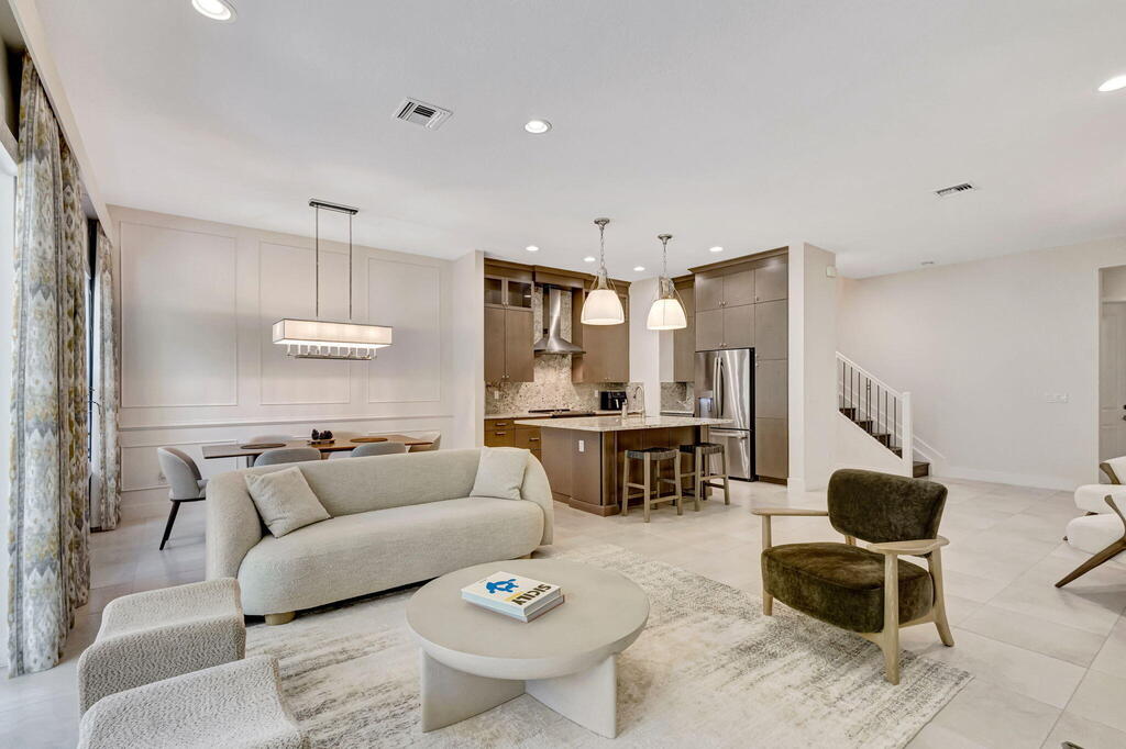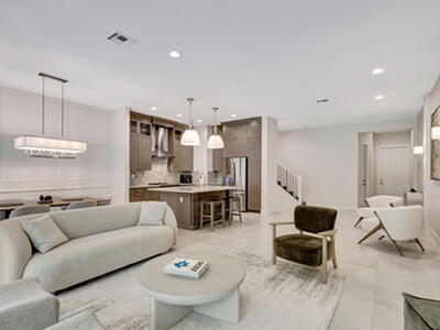 SEASONAL RENTAL This 3 bed, 3 bath townhome features a stunning open floor plan with gorgeous preserve views, and an unbeatable location just steps away from numerous dining and shopping destinations. The exquisite attention to detail can be seen from the moment you enter, with volume ceilings, intricate wall detailing, custom light fixtures, beautiful tile flooring, and upgraded cabinets and countertops.The main living area is bright and open, with floor to ceiling sliders that provide direct access to the private patio overlooking the preserve. Upstairs you'll find a spacious loft area and sizable bedrooms all with walk in closets. The primary suite enjoys breathtaking views, large custom closet, oversized walk in shower, dual vanities, and beautifully tiled floors. 2 car garage.