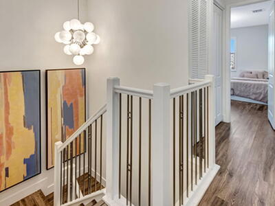 - Interior FeaturesKitchen Island, Roman Tub, Split Bedroom, Upstairs Living Area, Volume Ceiling and Walk-in Closet