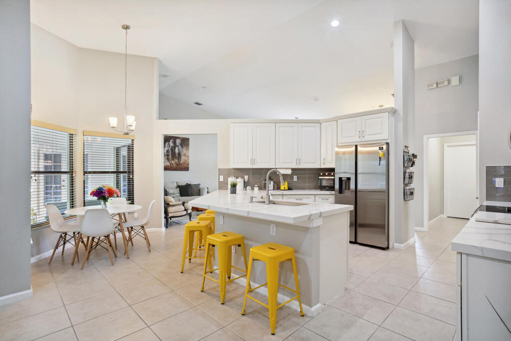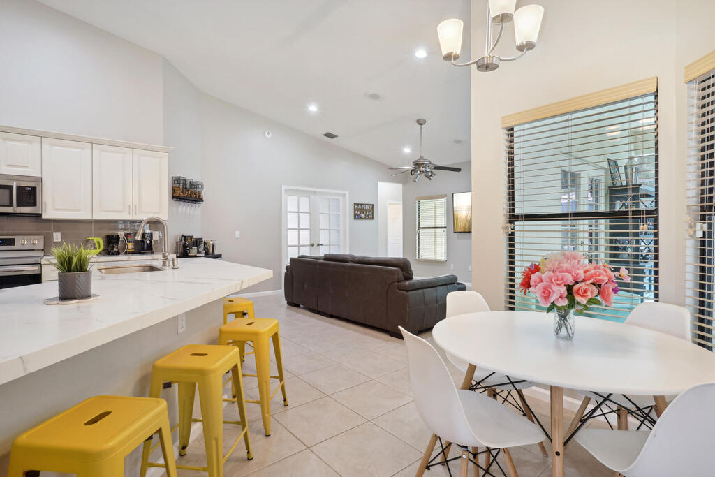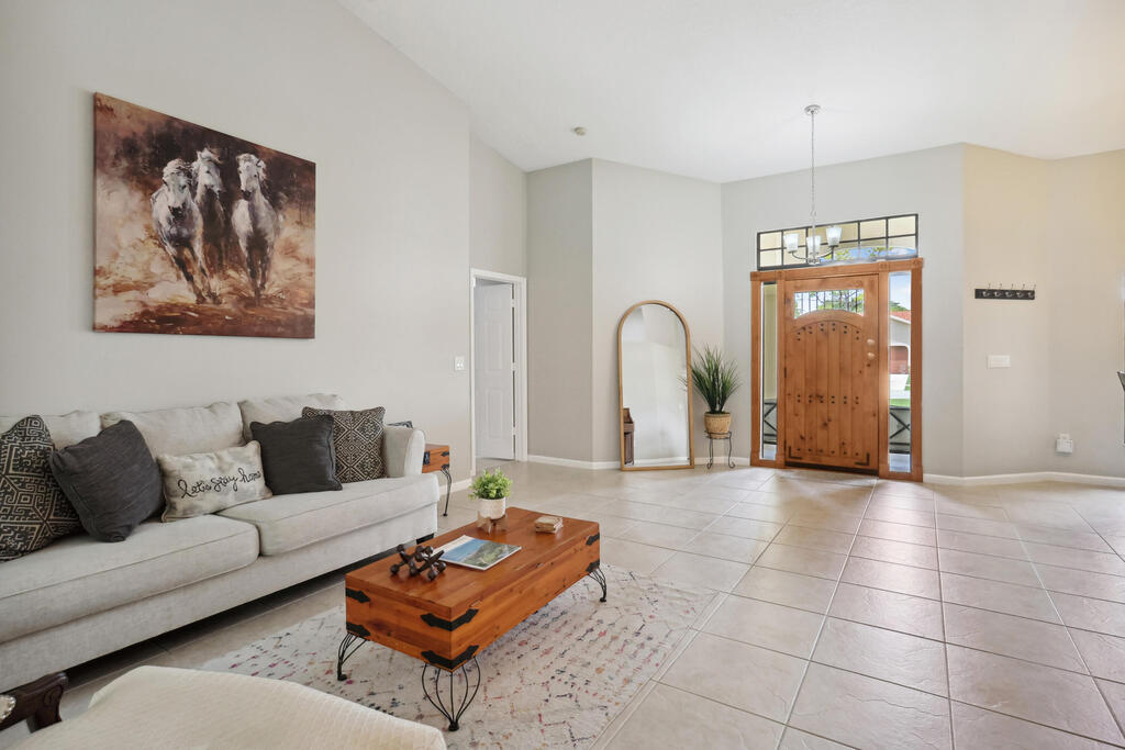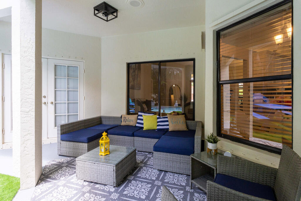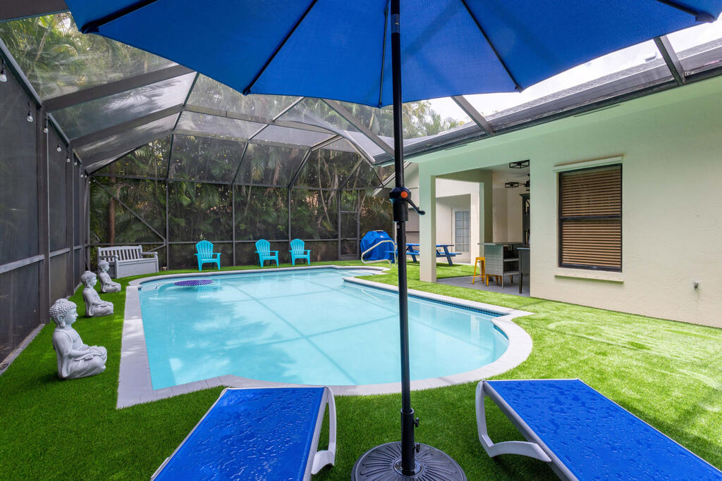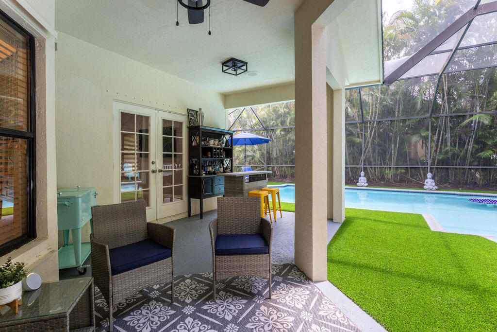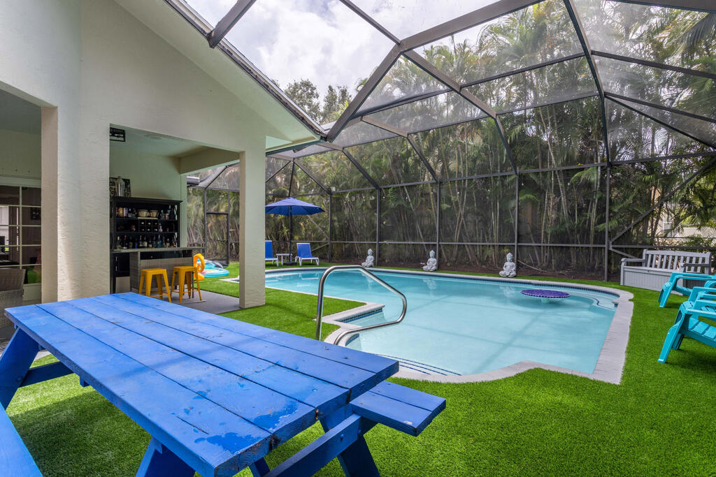 Seasonal Rental. Welcome to this immaculate fully furnished 4 bedrooms and 3 bath pool home that epitomizes comfort and style. The entry door leads you into a spacious and bright living area tiled throughout, with specious bedrooms. Beautiful white kitchen cabinets with stainless steal appliance, fully equipped for your culinary needs. With a split bedroom floor plan, master bedroom has a lot of privacy. Step outside to a screened in newly renovated 'Zen' swimming pool area with a built in bar with ample space to entertain. The long driveway has space to fit up to 4 cars. Golf cart ride away from the Polo Club and some of best Wellington restaurants! A rated schools.