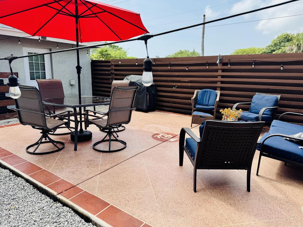 FEBRUARY MONTH AVAILABLE. . Built in 2019, this fully furnished 3 bedroom/2 bath home is perfect. Great indoor and outdoor space. It is fully fenced in case you' have furry family members. Property is painted in cool gray and decorated in beach decor. It is a long, narrow home with living and dining area towards the front and bedrooms and bathrooms down the hallway. Each bedroom has large walk-in closets. The master suite, which has its own bathroom, has door that leads to a beautiful outside patio that is fully fenced and well lit. The location can't be beat. Very close to beaches, downtown and golf course. Corner house, so lots of parking right by entrance. 2 king beds, 1 queen. PERFECT FOR RELOCATION, VACATION OR REMOTE WORK