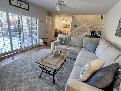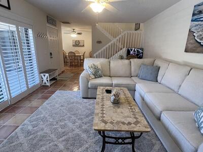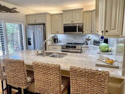 Newly remodeled gorgeous townhome situated on a great private corner lot offering lovely lake views. The Lakes is a well sought after community. Amenities of the home include induction oven, new washer/dryer, modern and new primary bath with illuminated Smart mirror and large shower. 3 smart tv's, central vacuum, King and queen beds, great closet space. 2 pull out sofa's..one upstairs and one downstairs. Turnkey. New sliding doors to be installed. Exterior porch area offers privacy for entertainig. Weber grill. Hurricane shutters. Walk or short drive to the Juno Beach, shops and restaurants. Community pool, tennis/pickle ball courts/playground and lovely walking paths.