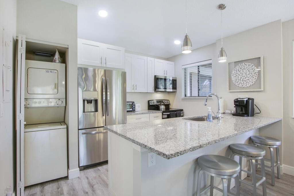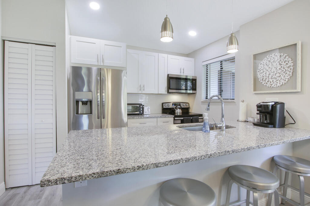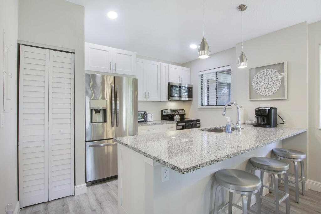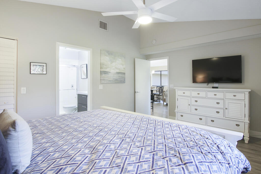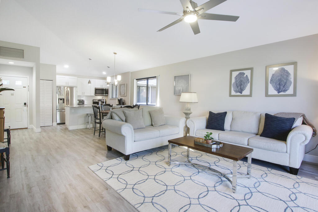 Escape to this immaculate cottage nestled in the heart of PGA National. This fully furnished & equipped retreat invites you to simply bring your suitcase & feel instantly at home. The master suite features a king-sized bed, flat screen TV, and ensuite bathroom. The guest room offers two full-sized beds, with a walk-in shower in the guest bathroom. The updated kitchen & bathrooms showcase elegant tile work & thoughtful appointments. Enjoy the patio, complete with a grill, & a fully equipped kitchen ready for all your culinary needs. This charming home comfortably hosts up to six guests, offering clean & fresh accommodations including linens, towels, cookware, dinnerware, WIFI, & cable. Ideally situated near the community pool & PGA National. Not available Jan - Mar 2026