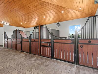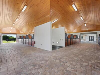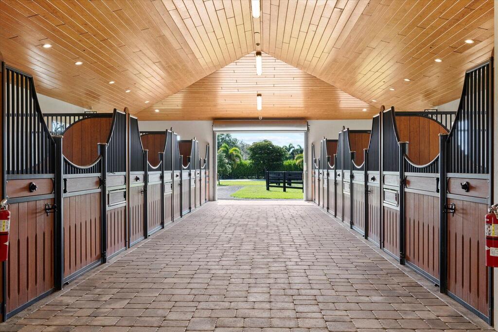 Welcome to your equestrian paradise! Located inside the gates of Wellington's prestigious Palm Beach Point, this 5.7 acre equestrian haven is ideal for your seasonal stay! This unique property offers a blend of functionality and luxury. Here, you'll find everything you need to indulge your passion for horses and enjoy the best of the equestrian season! Upon entry of the barn you are greeted by 14 spacious 12x12 stalls. Whether a professional or equestrian enthusiast, this setup is designed to cater to your horses' every need and your convenience. Outside, the farm features a 6 horse walker, and 6 oversized paddocks where your horses can graze and stretch their legs. It's the ideal environment for their well-being and happiness. When it's time to train an oversized arena measuring an