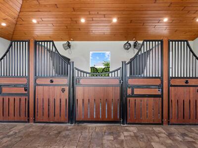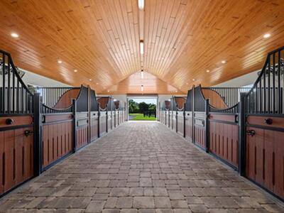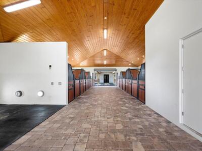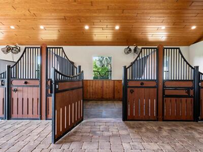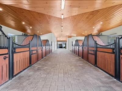 - Equestrian FeaturesBoarding Allowed, Bridle Path/Trails, Center Aisle, Grooms Quarters, Lounge, Office, Paddocks, Stable and Water & Electric