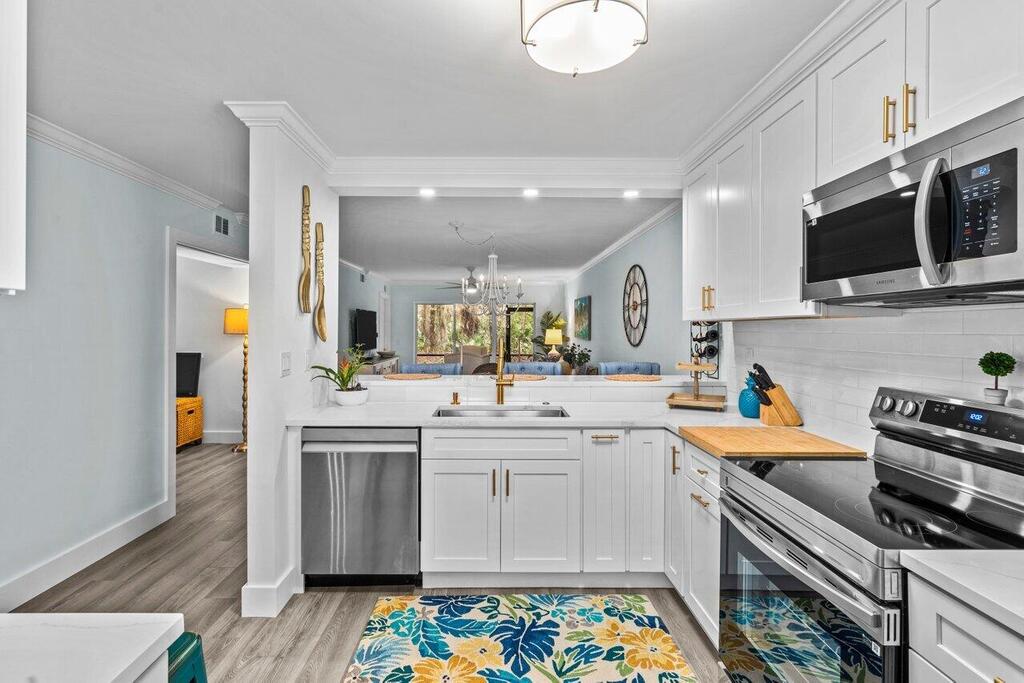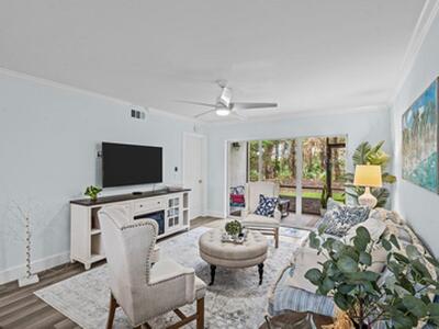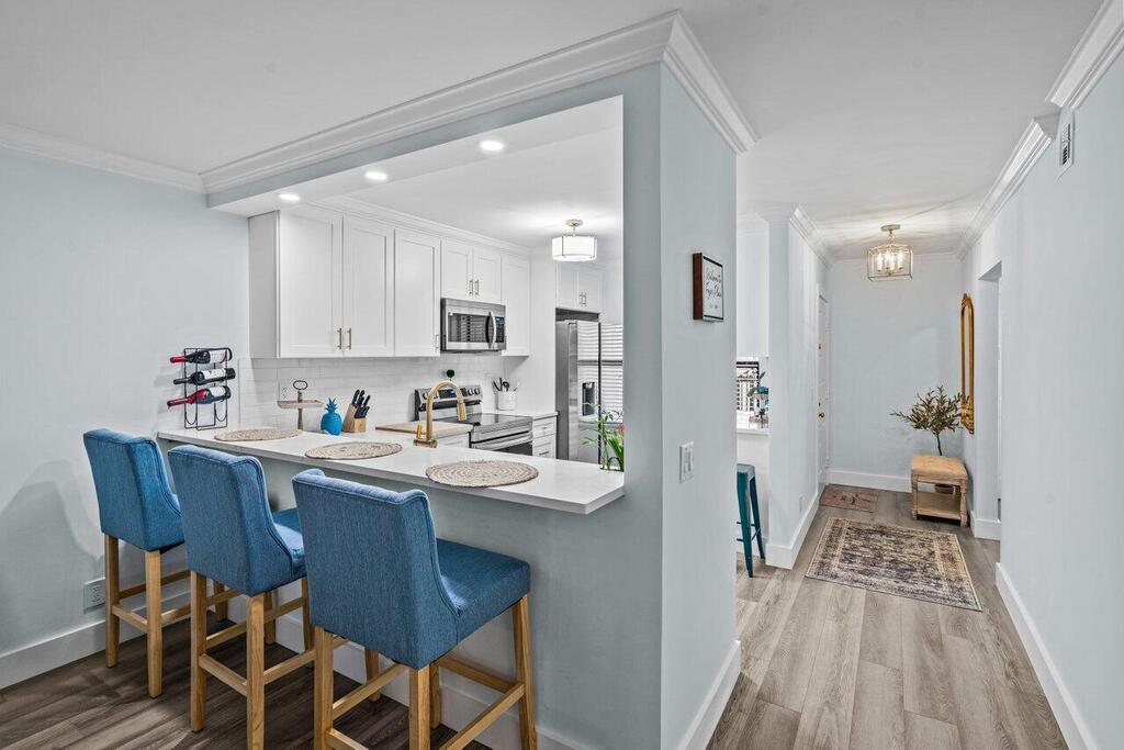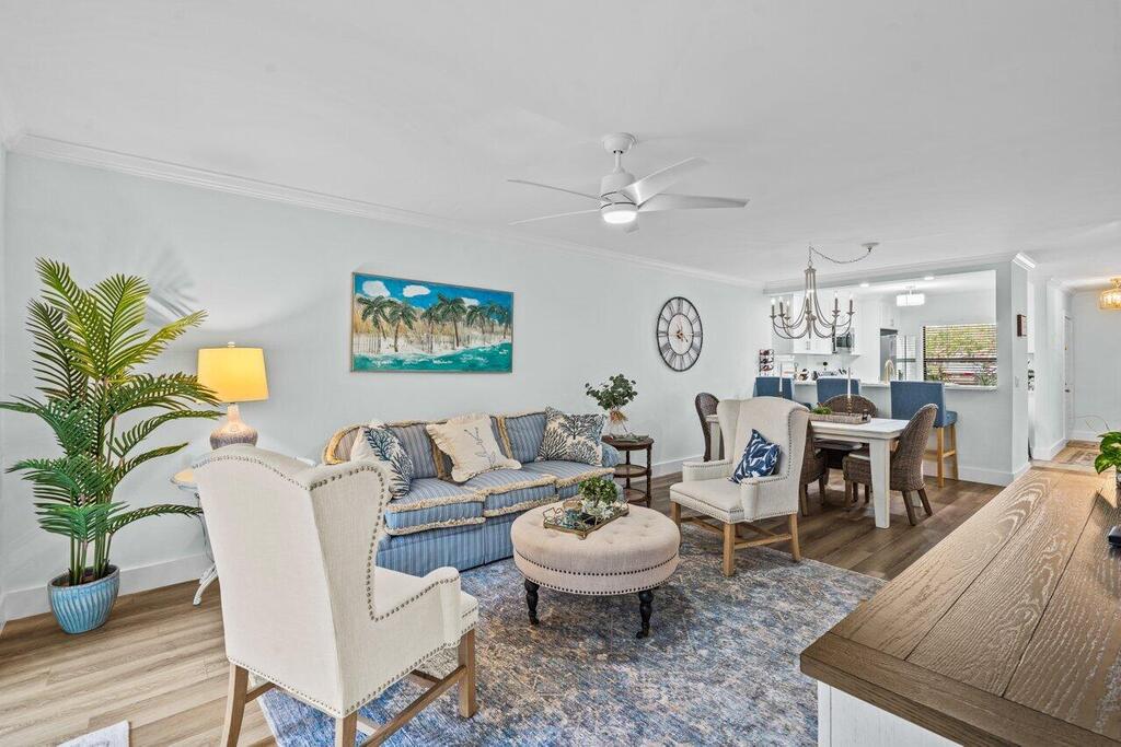 Turn-Key, Fully Furnished Condo in Prime Palm Beach Gardens! This completely renovated, first-floor condo offers 3 bedrooms and 2 baths, currently configured as a 2-bedroom, 2-bath with a versatile bonus room, perfect as an office or den. The stylish kitchen features modern cabinetry, stainless steel appliances, and elegant finishes, flowing seamlessly into the open living space. Enjoy the convenience of an in-unit laundry room and relax on the screened patio. Located in the heart of Palm Beach Gardens, mins from I95, turnpike, dining, shopping and beaches.