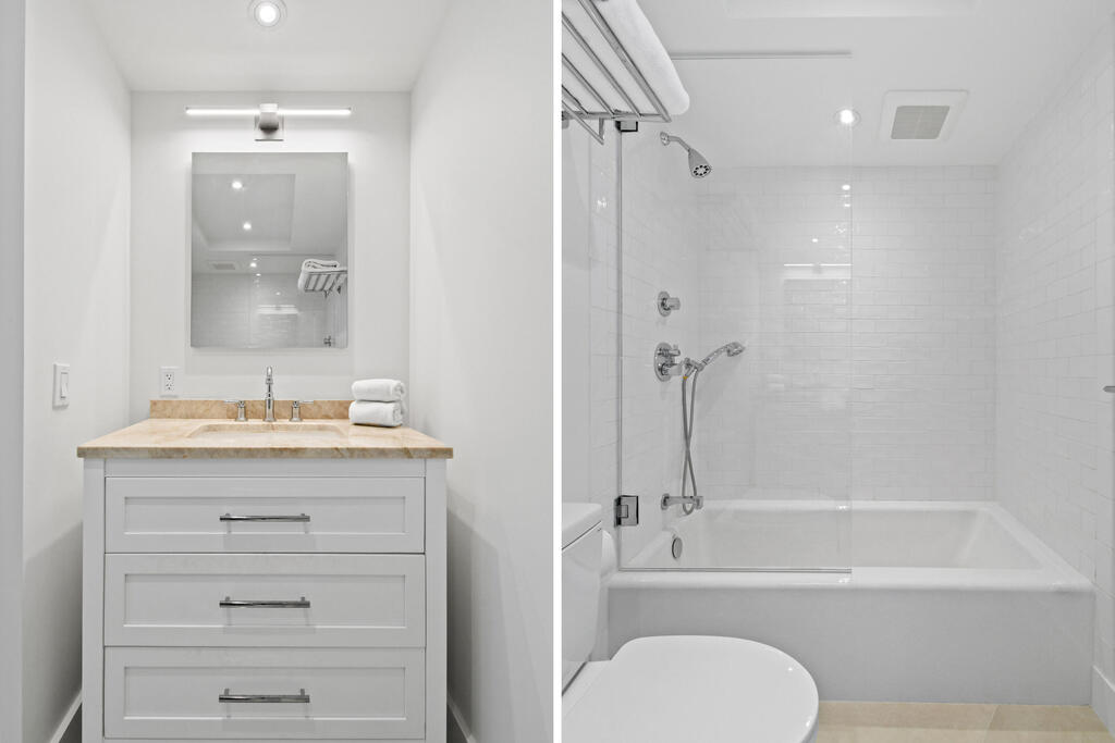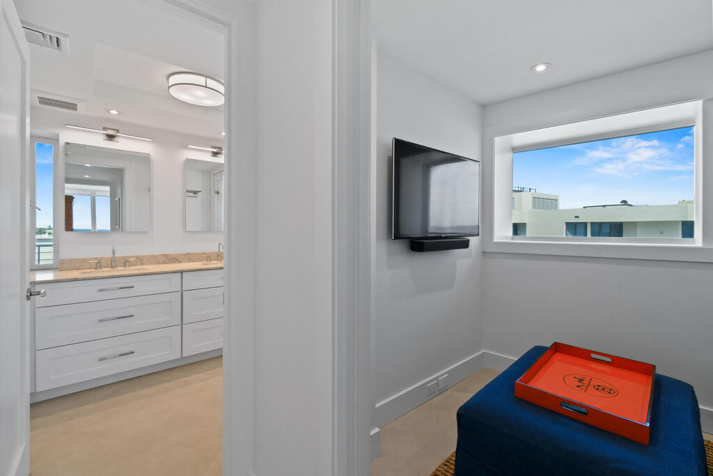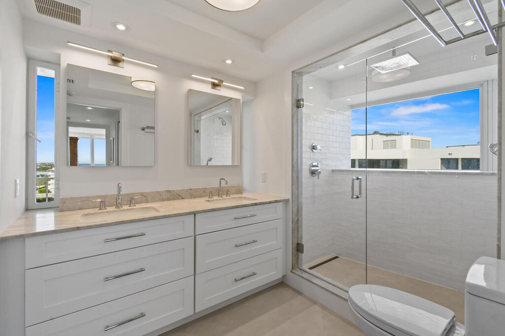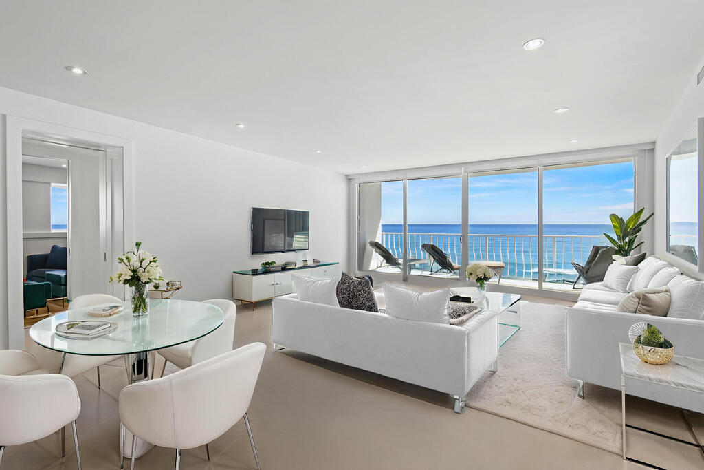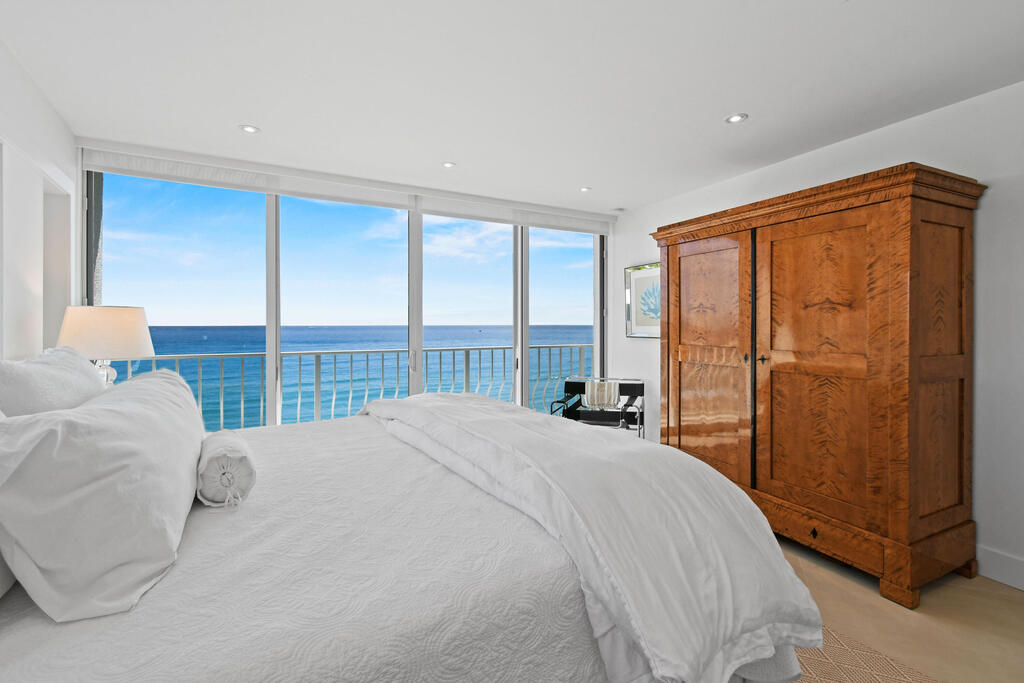 Experience breathtaking panoramic views of the ocean, Intracoastal, and pristine beach in the coming season. This beautifully renovated two-bedroom, two-bathroom apartment with a den and media room is nestled in the heart of sophisticated Palm Beach Island. Featuring a modern and contemporary design, this light-filled residence offers an elegant and inviting ambiance. The building boasts an array of luxury amenities, including a state-of-the-art fitness center, tennis courts, community room, heated pool, in-house management, library, 24-hour doorman security.