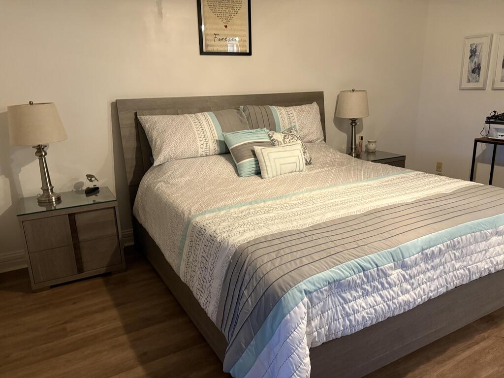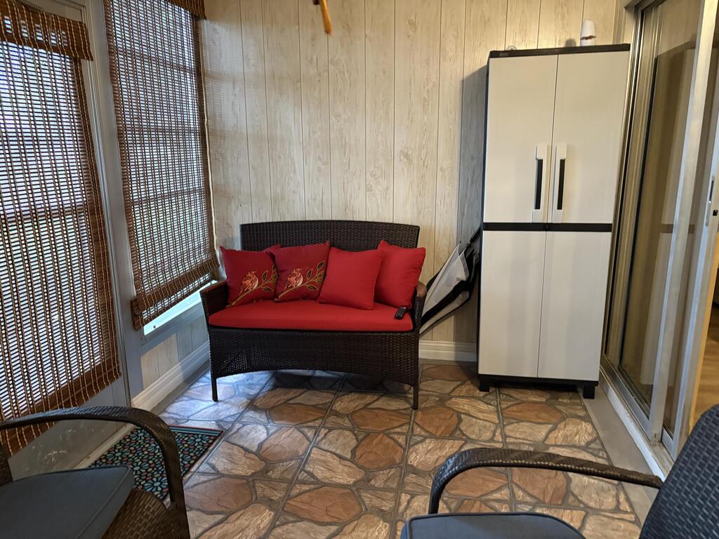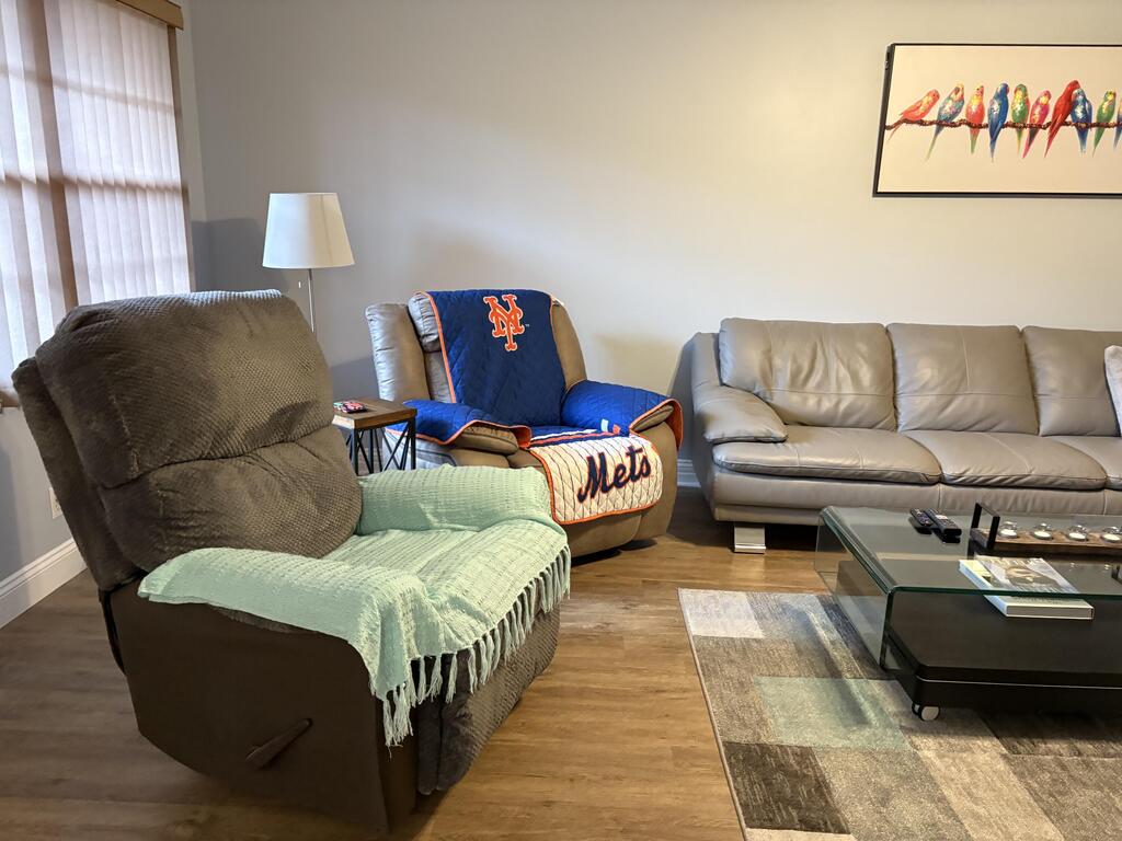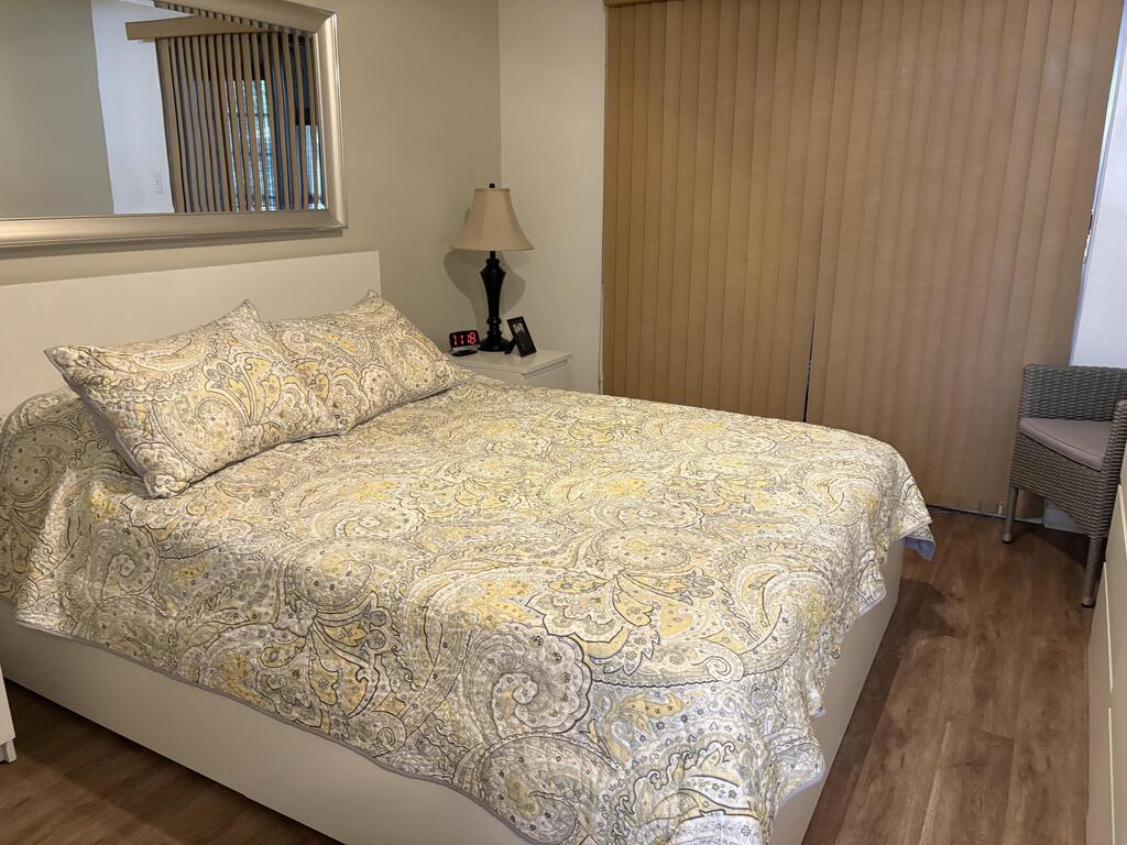 A perfect rental for season set up as 2 bedrooms 2 baths. Stall shower in master bathroom King bed in Master Queen bed in bedroom 2. Laminate flooring throughout. Enclosed patio with futon Steps to bus, pool, parking ASSOC REQUIRES 1 OCCUP 55+ Occupancy from 10/15/25 -3/15/26