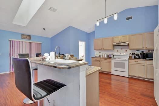 3-bedroom, 2-bath cozy home with a spacious 2-car garage. Enjoy a large fenced backyard and an enclosed lanai--perfect for relaxing or entertaining. This home features tile flooring throughout and includes a washer and dryer. Conveniently located schools, parks, and shopping center