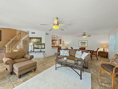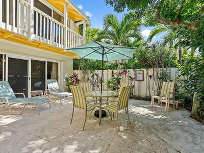 This timeless Key West styled and furnished Townhouse is a spacious unit with 3 bedrooms, 2.5 bathrooms and private outdoor patio area. The first level provides an open concept design with tile flooring throughout. The south facing interior sliding glass doors open directly to the private courtyard, offering extended living space. The kitchen has wood cabinetry, granite countertops, stainless appliances and a breakfast bar. The open floor plan is perfect for casual dining and entertaining. Upstairs are 2 guest bedrooms that share a full bath. The large master suite has a walk-in closet and a lovely master bath with a step-in shower and duel sinks. The community has a direct and private pathway to the beach. No pets.