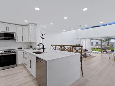 TURNKEY modern townhome located in the gated boating community of Mariner's Cove. Available November, 2025. Beautifully renovated unit with new White Shaker cabinetry, Quartz countertops and SS appliances. First level has one full bedroom + one full bathroom. Two upstairs bedrooms have vaulted ceilings and ample closet space. Florida room with impact sliders and expansive views of water and multimillion dollar waterfront homes. Tranquil, travertine patio opens to intercostal view and 40' salt water boat slips with no fixed bridges to ICS waterways and 2 ocean inlets. Beautiful community pool, Tommy Bahama style clubhouse and gym overlook fresh water marina. Unbeatable location in Palm Beach Gardens!
