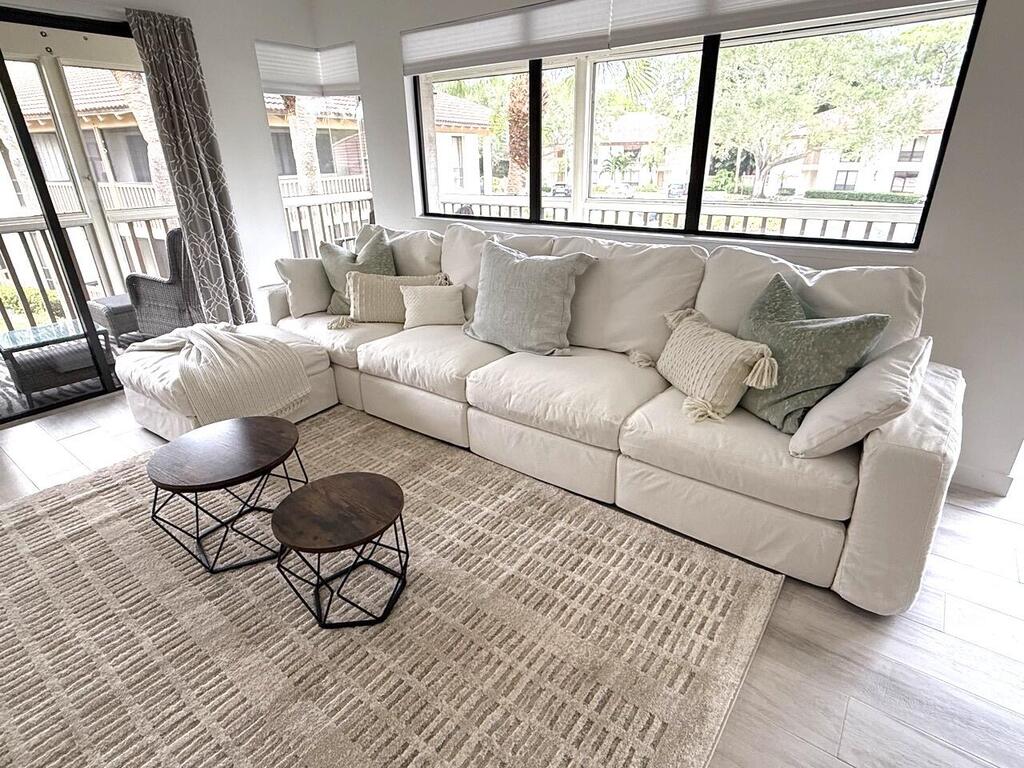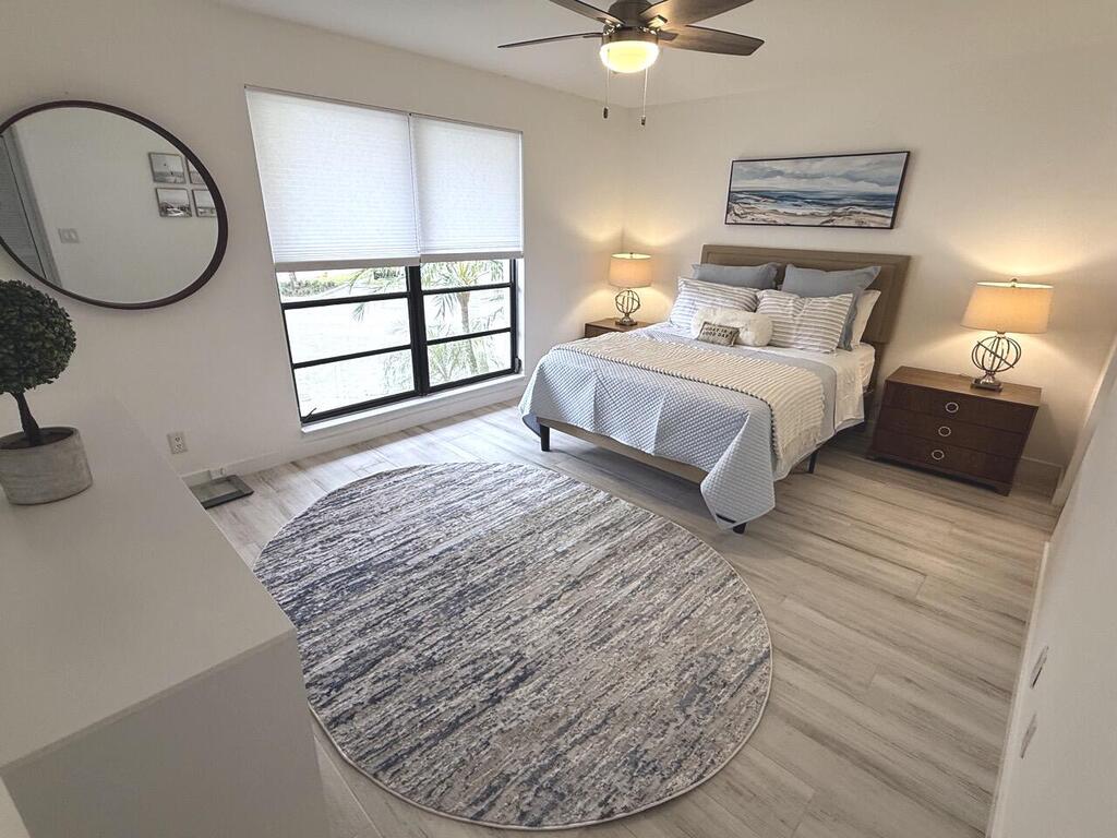 Available for seasonal or annual rental. Private Entrance.Just been re-furnished. All new light grey porcelain plank tile throughout. Guest and master bathrooms have been renovated, new toilets, vanities, mirrors,,lighting, tile work and glass seamless shower doors. TV's have been wall mounted and all new ceiling fans installed. Outside wraparound balcony floor has been tiles as well.