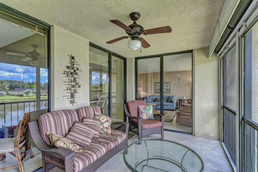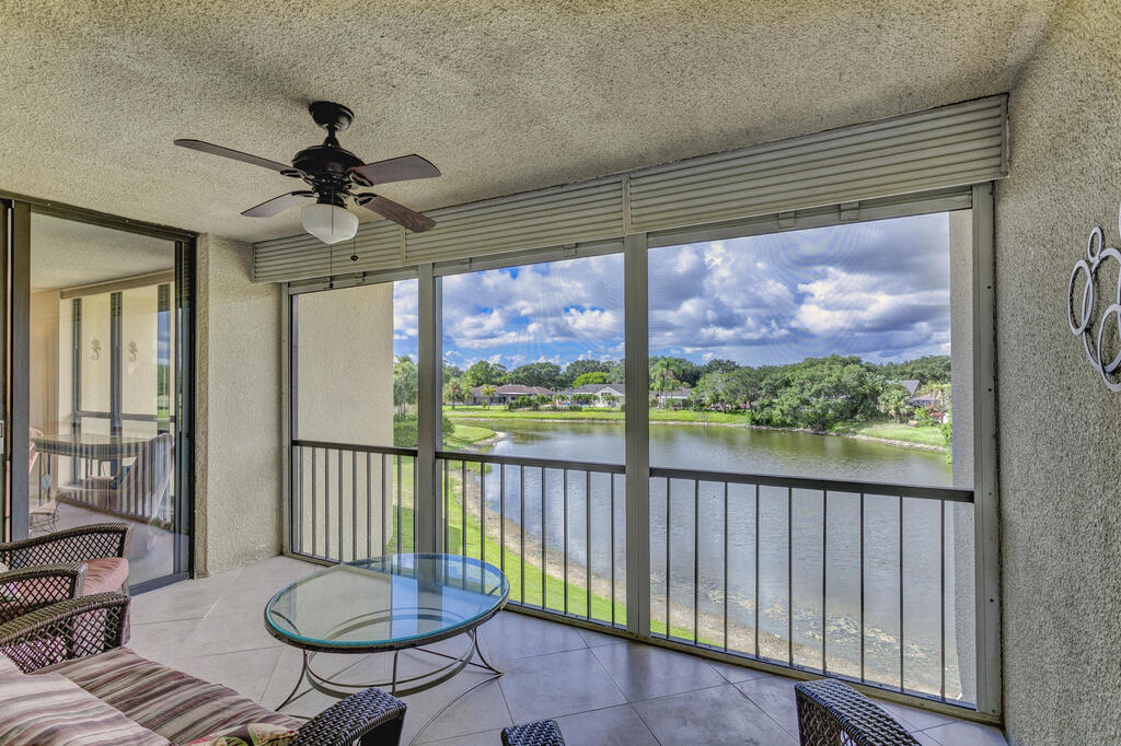 Fabulous 2 bedroom, 2 bath condo with beautiful lake views from every room! Eat in kitchen, covered, screened balcony is shaded all afternoon & evening for enjoyment. Large utility room with full sized washer & dryer plus extra storage. Offered nicely furnished and turnkey! Rent includes all utilities plus cable and high speed internet! Tenant pays electric over $100/mo. Neighborhood has 3 heated pools, 2 tennis/pickleball courts, lakeside clubhouse. Lots of green space to enjoy quiet walks under majestic oaks and past serene lakes! 55+ community close to everything! Pet friendly neighborhood allows 1 pet under 25 lb. Floor plan in document section. 1/2 mile to either I-95 or turnpike. Three grocery stores & multiple great restaurants all walkable! Available now!!!