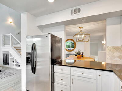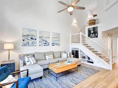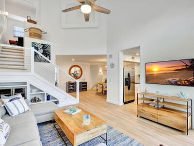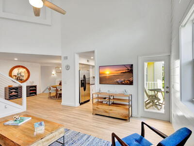 Newly renovated condominium ideally located just 300 feet from the beach within a secure gated community. This residence features 2bedrooms, 2 bathrooms, and a 1-car garage. Recent upgrades encompass a kitchen with granite countertops and stainless steel appliances, contemporary bathrooms, new flooring, paint, fixtures, and impact windows throughout. The expansive great room highlights a shiplap accent wall and a modern stair railing with a built-in wine cooler beneath. The spacious master bedroom suite includes a loft, a stunning bathroom, and a walk-in closet offering ocean views. Sea Colony amenities feature tennis and pickleball courts, a clubhouse with a pool, hot tub, pool deck, and gym, as well as private gated beach access. Conveniently situated near restaurants and shops.