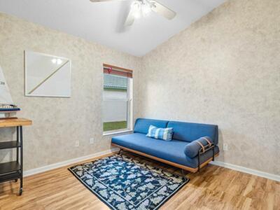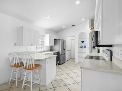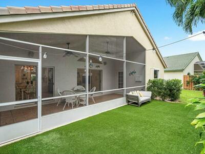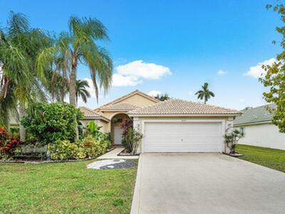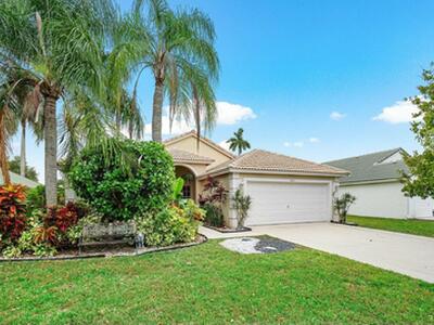 Open floor plan with high ceiling full of natural light. The gated community of Wellington's Edge has beautiful trails and is conveniently located near A-rated schools. Walking distance from the Wellington mall, restaurants, shopping and entertainment. This is the most desirable layout of the single story single family home in Wellington Edge with two large sliding glass doors, a large patio, separate laundry room and an oversized garage. Residents enjoy access to three swimming pools, tennis courts, a fitness center and a playground.