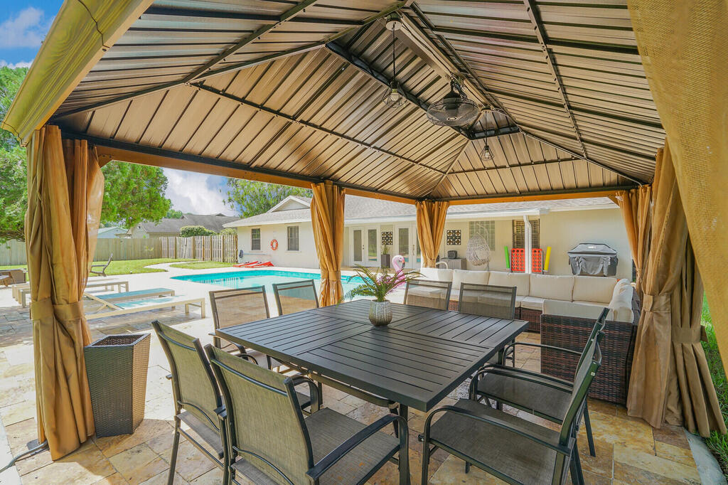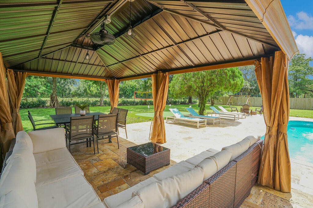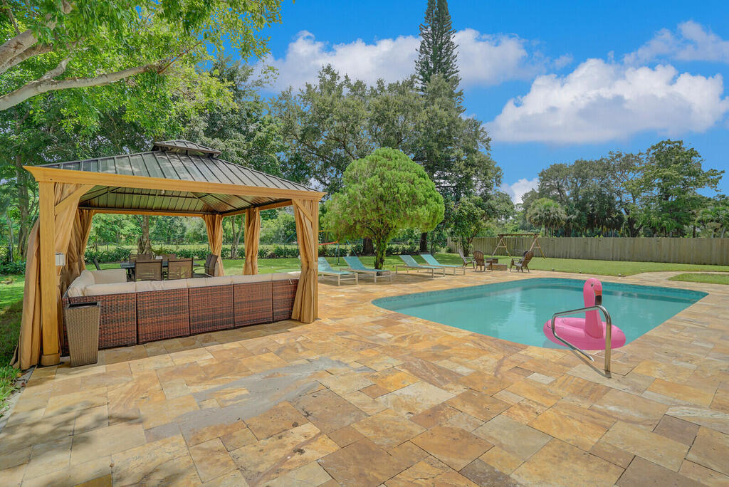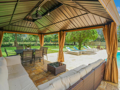 Welcome to your perfect seasonal equestrian retreat nestled in the prestigious and secure community of Wellington. FULLY FURNISHED! This luxurious 2,700 sq ft pool home seamlessly blends elegance and comfort, offering six beautifully furnished bedrooms and three impeccably designed bathrooms. Boat and RV enthusiasts are welcome, as this property provides ample space for both. Every corner of this home reflects modern sophistication, with thoughtfully curated furnishings and meticulous attention to detail. Step outside to discover a serene backyard oasis. The crystal-clear pool offers a refreshing escape, perfect for cooling off on warm days or enjoying a leisurely swim. A charming gazebo adds a touch of refinement, serving as a shaded retreat for relaxation or intimate gatherings.