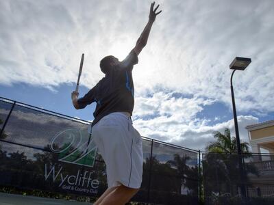 Take advantage of the season and enjoy this light-filled corner lot home with a Silver (non-golf) Equity Membership available. This 2-bedroom plus den, 2-bathroom home features a large yard with a covered & screened enclosed patio. Inside, you'll find immaculate tile floors throughout, recessed lighting, and a neutral color palette. The open layout seamlessly connects the great room and master suite to a covered, screened patio--perfect for relaxing or entertaining. Don't miss your chance to experience the exceptional amenities of Wycliffe Golf & Country Club this winter season.