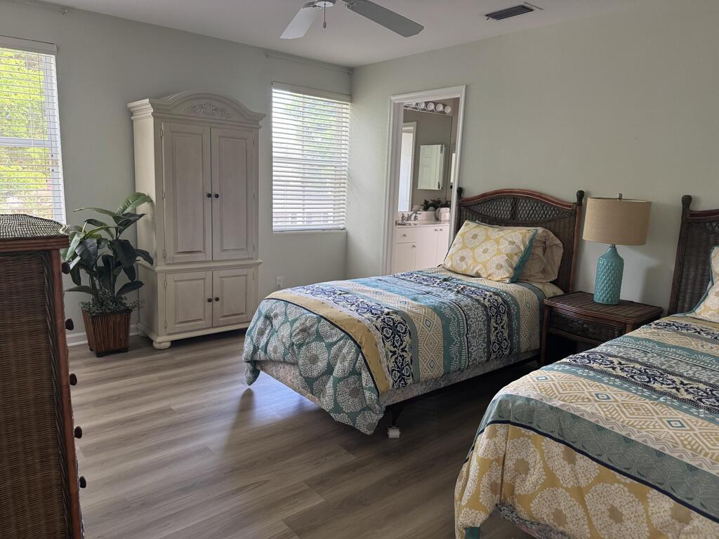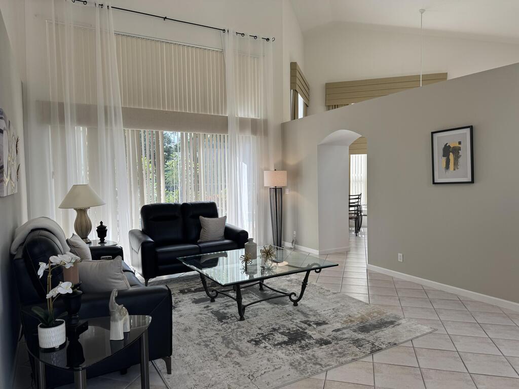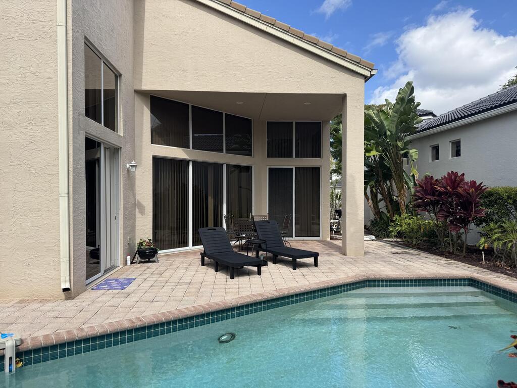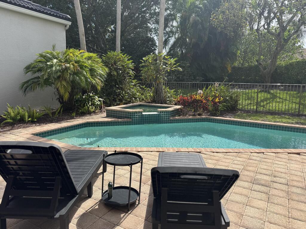 Spend the winter in paradise in 2026 and enjoy all the amenities BallenIsle has to offer. Property currently has a tennis membership, owner will upgrade to SPORTS with GOLF PRIVILEGES at owners expense. Primary retreat on MAIN LEVEL with KING SIZE BED along with one additional bedroom or home office on main level. Upstairs you will find 2 bedrooms and Jack and Jill bathroom plus loft area. Brand new luxury vinyl flooring in 2nd bedroom downstairs, stairway and upper level. Kitchen opens to family room overlooking private backyard with pool and spa. BallenIsle is a gated golf club with resort style amenities including tennis, pickle ball, card games, extensive social calendar, fitness center, multiple restaurants and so much more.