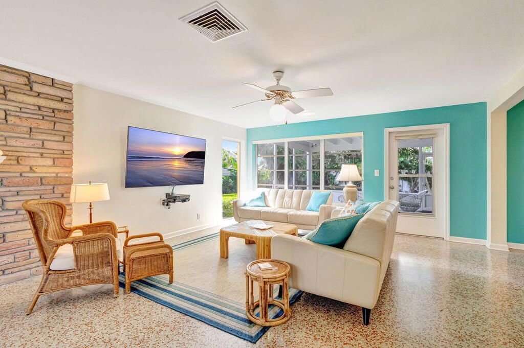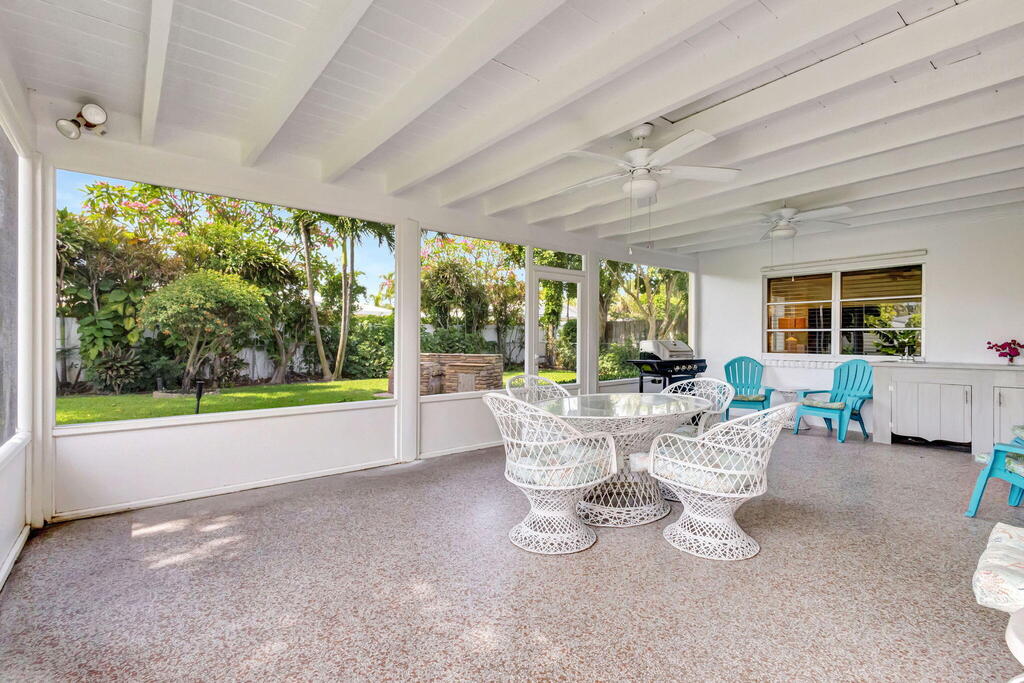 Only a block from the beautiful Palm Beach Shores beach and steps to great local dining. This fully furnished 3-BR 2-BA home offers classic Florida charm with terrazzo floors, a large tropical fenced yard, and a spacious screened patio with dining area and grill. The home comfortably sleeps six. With a fully equipped kitchen, fresh linens, cable TV, Wi-Fi, and a full-sized washer and dryer, this home has everything you need for a comfortable stay. Available for monthly rental May through November. One-month minimum stay required. Walk to the beach or use the included beach parking pass. Life is better in flip flops! 15 mins to premier shopping, dining, and entertainment. 20 mins to PBI.