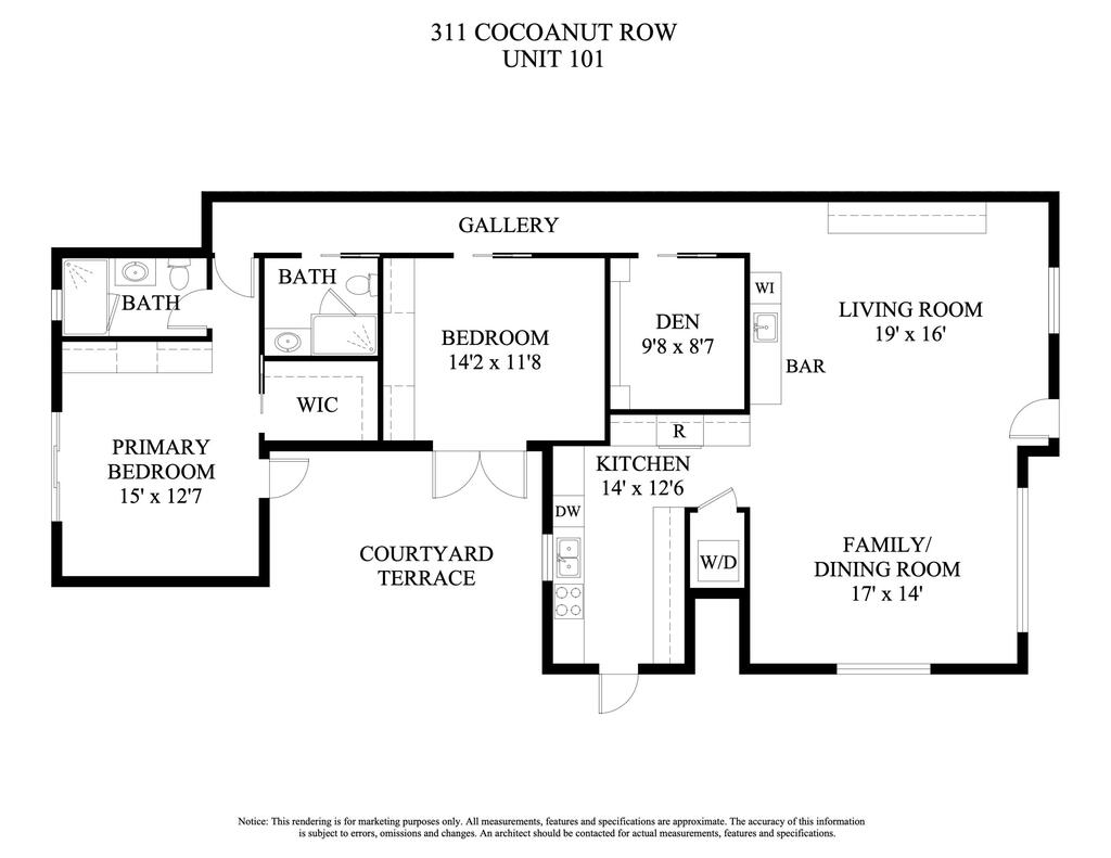 A very convenient spot in town, walkable to Worth and Four Arts. Available Nov 1st for annual or seasonal leaseThis first floor 3 bedroom unit is sunlit, fresh, renovated and close to everything. Currently configured as 2 bedrooms and a den.