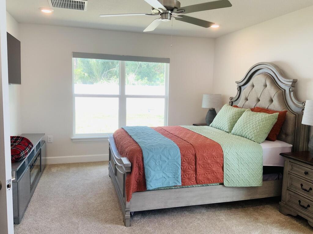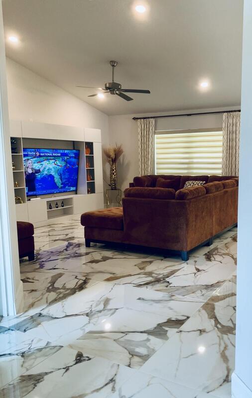 Centrally Located Gem - Close to Everything You Need! Step into this inviting home and be greeted by a formal living and dining area, complete with soaring vaulted ceilings and beautiful engineered wood flooring throughout the main living spaces. The kitchen boasts granite countertops, stainless steel appliances, and plenty of space to create culinary delights. The Primary Suite features a dual vanity, separate toilets, a spacious walk-in closet connecting the ''his and hers'' bathrooms, and ample storage with three linen closets throughout the home. Relax and unwind on the covered backyard lanai, which offers serene views of the pond--perfect for morning coffee or weekend barbecues. The expansive backyard is ideal for a private swimming pool or other outdoor activities.