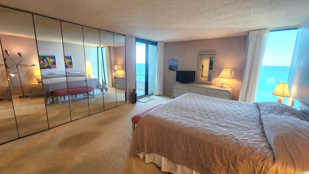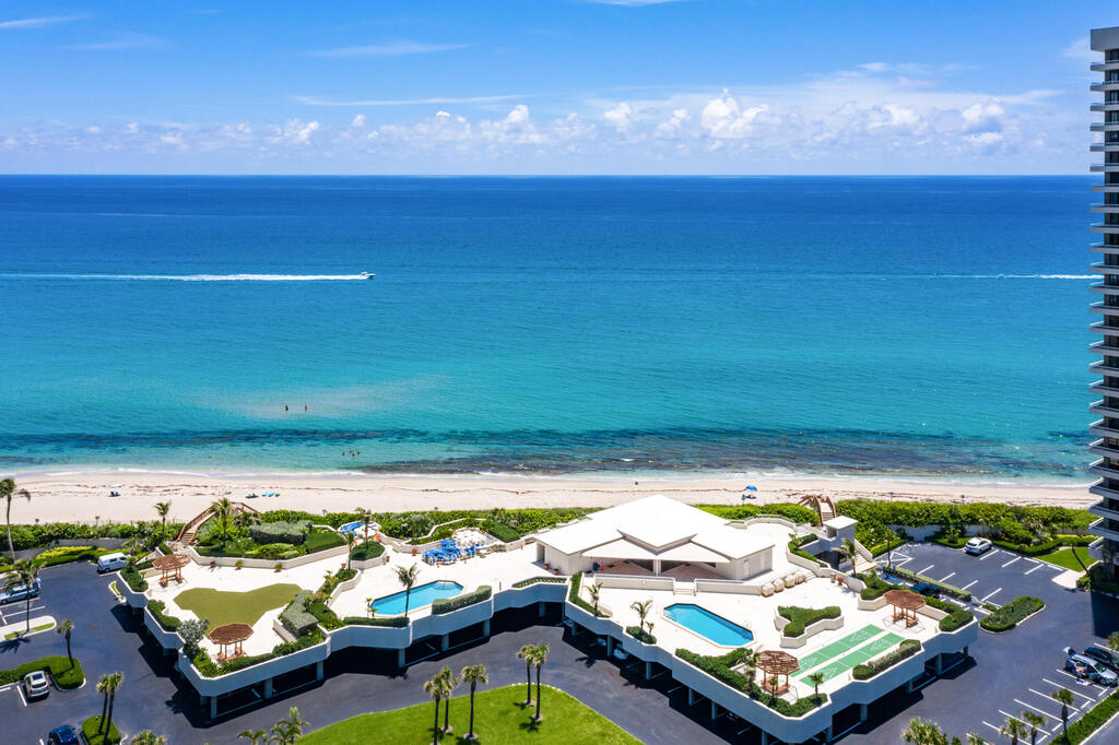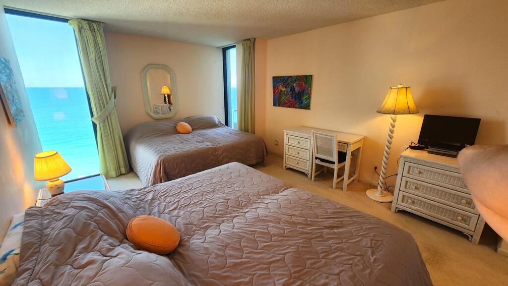 Immaculate 24th floor direct oceanfront 2 bedroom condo w/stunning views thur floor-to-ceiling sliders. Very quiet, only 4 units per floor. Large rooms, split floor plan, spacious living areas, abundant natural light. Guest room has 2 king beds. Nicely remodeled modern lobby. Community has 24 hr manned gate access, pool, tennis courts, fitness center, private beach access, shuffle board, putting green & on-site management. Desirable ocean to Intracoastal location close to PGA, Phil Foster Park, Gardens Mall, fine dining, & boutique shopping Embrace the vibrant culture & outdoor adventures making every day feel like a vacation. 1 assigned parking spot, no pets