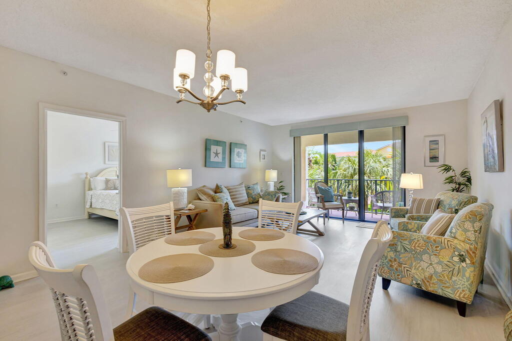Welcome to this stunning third-floor condo offering picturesque views of the pool and lagoon right from your private balcony. With desirable southern exposure, you'll enjoy sunshine all day long! The interior features light-toned vinyl flooring and tasteful Florida-style furnishings, creating a bright and breezy coastal vibe. Both bedrooms are comfortably furnished with queen-sized beds. Located in a secure, gated community, residents enjoy access to two sparkling pools with Jacuzzi tubs, a well-equipped fitness center, and a BBQ area perfect for entertaining. Ideally situated just minutes from pristine beaches, boating, golf courses, shopping, and dining! Available now through December 30, 2025. This unit is not available for season 2026. Covered Parking Space #29.