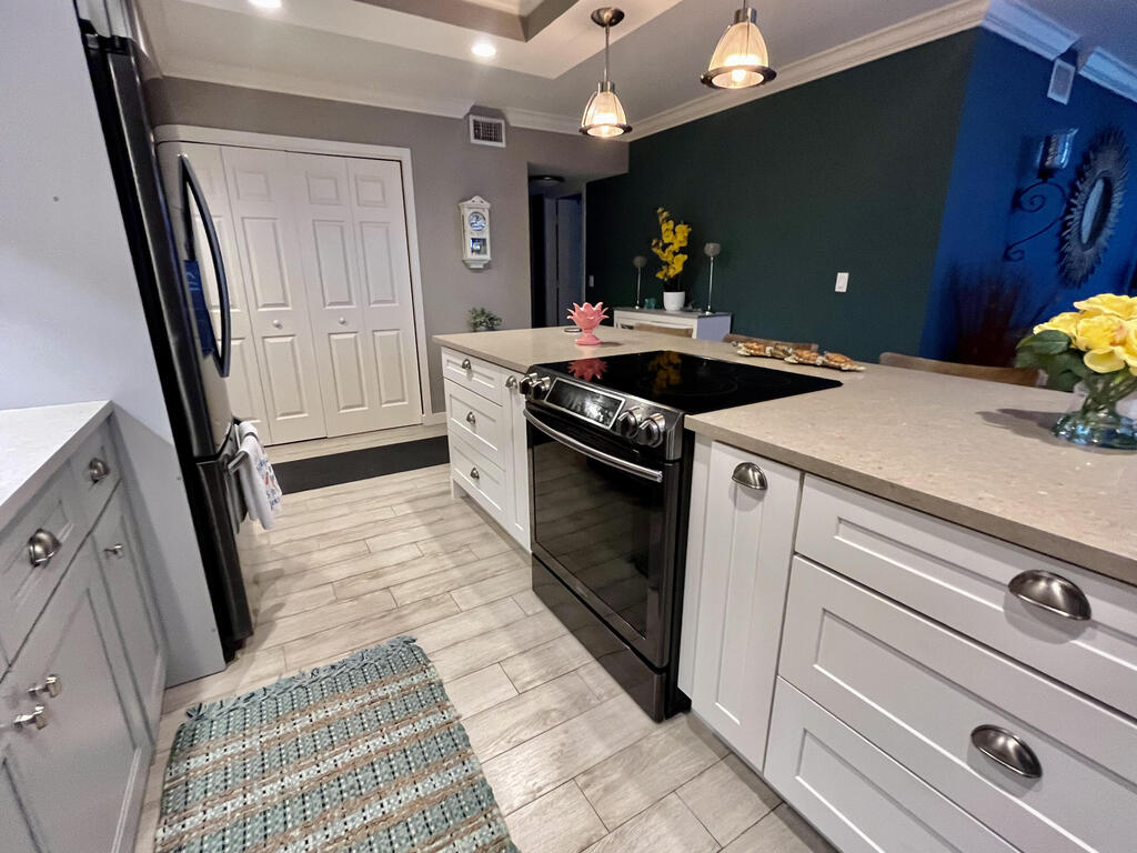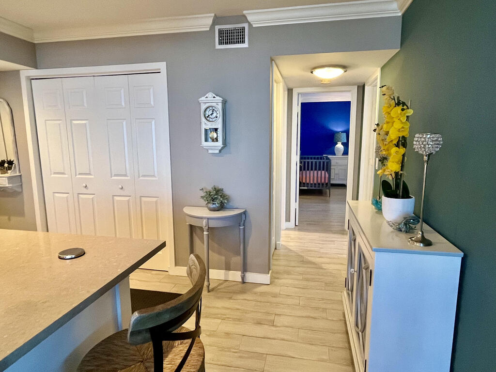 Pristine updated 2/2 Southwest Corner Unit available for Seasonal Rent. Unit is turnkey and has all the bells and whistles. Updated open kitchen concept overlooking the ICW and into the living/dining room. Impact glass sliding doors and windows throughout. Cozy but large bedrooms with King size bed in the master and Queen size pullout in the guest room. Crib if needed. TV's in all bedrooms. Builtin closets for easy storage of personal items. Renovated bathrooms featuring rain showers and jacuzzi tub. Stackable washer/dryer in unit. Covered parking space right by the front door. The bldg features a circular pool overlooking the oceans edge. Beautiful private beachfront access on Singer Islands private beaches. Bldg features a large fitness room, billiards, community room and kitchen...