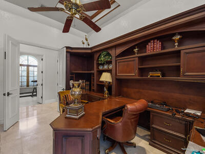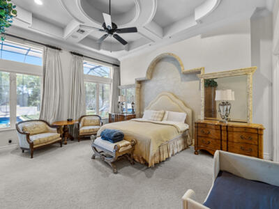 FURNISHED RENT. Nestled within an ultra-exclusive gated enclave of just 52 homes in Tierra Del Rey Estates South, this extraordinary estate offers a rare blend of elegance, privacy, and resort-style living. Spanning 3.4 ACRES and surrounded by a tranquil LAKE on three sides, this breathtaking property is truly unique. Step inside to discover FIVE spacious bedrooms, complemented by a dedicated GYM, private OFFICE, children's playroom, and a state-of-the-art MOVIE THEATER--all designed to enhance both comfort and entertainment. The open-concept living spaces are bathed in natural light, offering seamless indoor-outdoor integration. The outdoor experience is nothing short of spectacular. A soaring 21-foot enclosed pool lanai features a summer kitchen, creating the ultimate space for