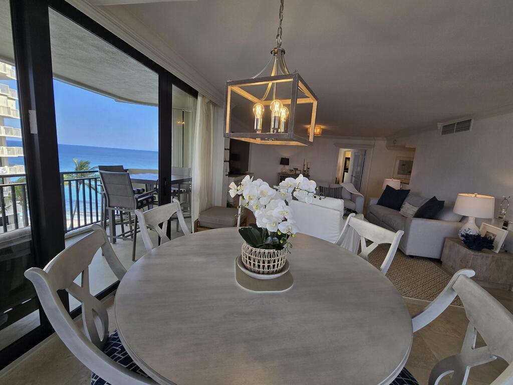 Oceanfront Elegance with Panoramic Views | 5460 N Ocean Drive, Singer Island, FLStep into coastal sophistication with this beautifully appointed, fully furnished 2-bedroom, 2-bathroom oceanfront condo offering breathtaking ocean and Intracoastal views from every room. Perched high above the pristine shores of Singer Island, this residence invites you to indulge in the ultimate beachfront lifestyle.The expansive wraparound balcony provides the perfect vantage point to enjoy sweeping sunrises over the Atlantic and unforgettable sunsets over the Intracoastal Waterway. A private balcony off the primary suite adds an intimate touch, ideal for morning coffee or evening reflection.Inside, the light-filled living room is both spacious and inviting, featuring a large sitting area and