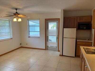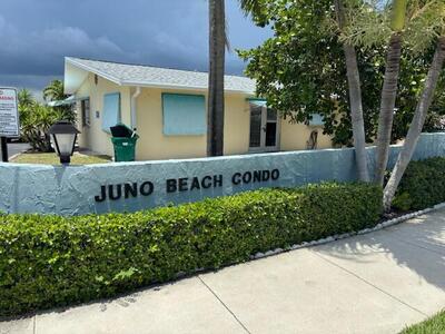 Over 55 community! - walking distance to Juno Beach and Pier! Technically a 3/2 sf home, however, legal desc. is condo.It is set up as a main home and efficiency, but must be rented as one property. Walk into a large open space to the kitchen, living room, and dining area - all with tile floors, and inside laundry. Attached efficiency has a sperate entrance, but can also be accessed through main home.There is plenty of parking with a carport on the west, and additional parking to the east. Assoc. has a club house, shuffleboard, and bocce ball court. One cat or dog less than 20 lbs. Also available seasonally for 2700 a month November 2025-April 2026.