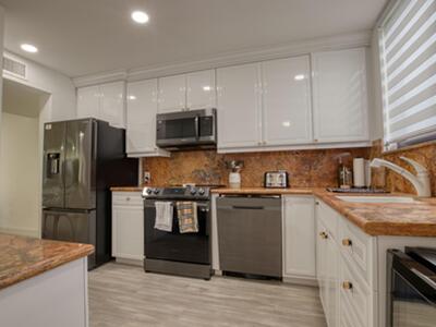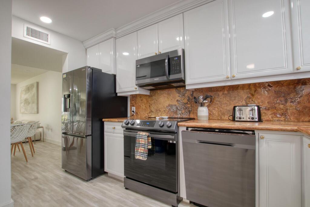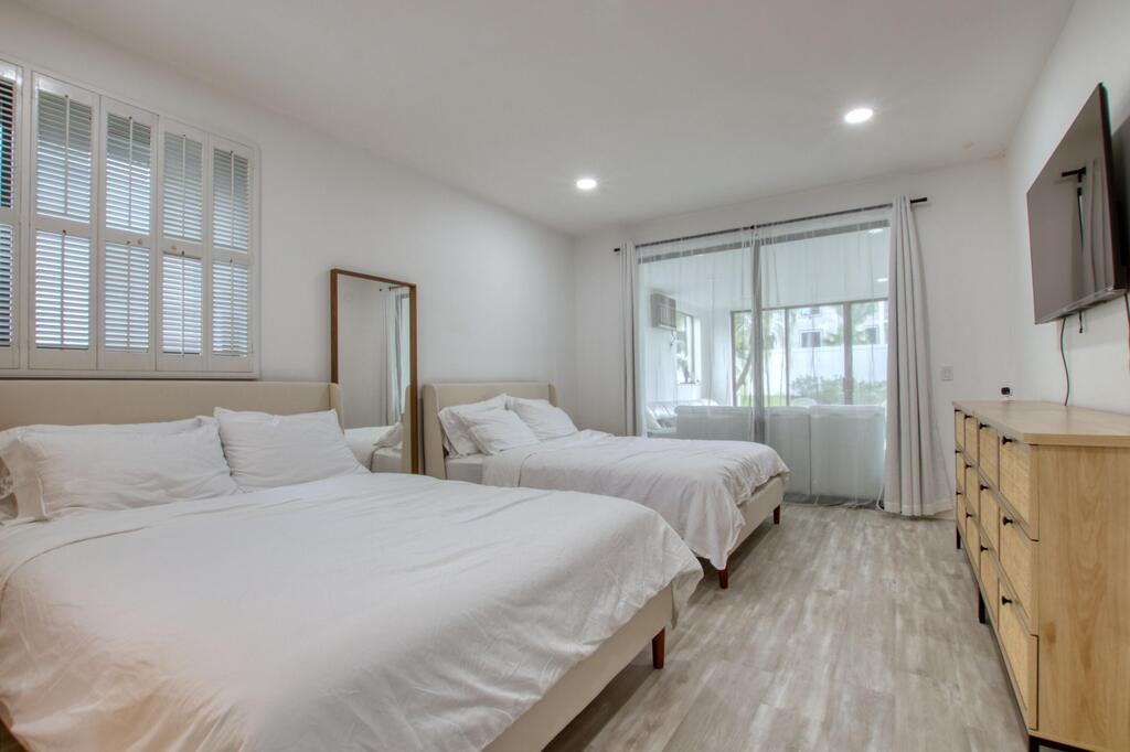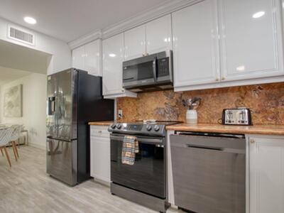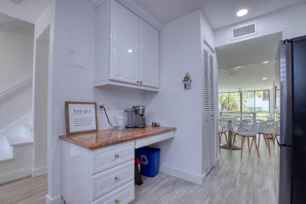 Totally renovated 3/2.5 townhome w. luxury vinyl flooring throughout, Master Bedroom downstairs has 2 queen beds. Master bedroom upstairs has king bed & 3rd bedroom has 2 queen beds. Florida room has been converted for more living space & privacy. Enjoy full-size washer & dryer Experience the peace & ambiance of manned guard gates & 24-our security patrols all located on lush, tropical grounds. Your community pool is located just out your front door. This amazing location is just minutes from Fl. turnpike & I95. Explore great restaurants, entertainment, shopping, places of worship, medical centers, airports, &beaches.