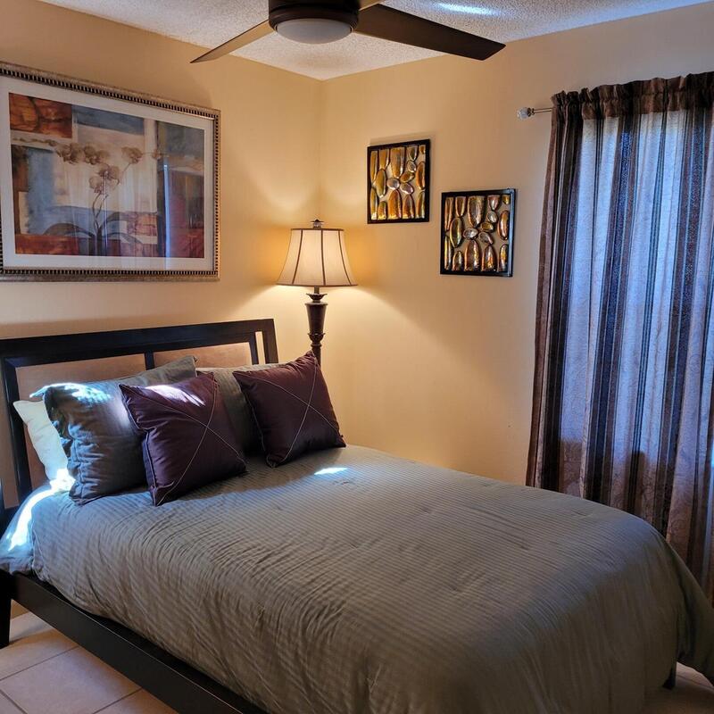 - Exterior FeaturesCovered Patio, Screened Patio and Shutters