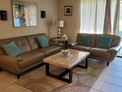 Here's your chance to spend the winter in paradise (Please note this is a furnished seasonal only in a HOPA - Housing For Older Persons Act community.) Nicely furnished and maintained , this one offers a private first floor location overlooking a greenbelt and the Fountains Golf Course beyond the canal. This side of Golf Colony has larger square foot units, tons of guest parking and steps to the nearby satellite pool. Plus you can enjoy the main pool and clubhouse. Mere minutes to drug stores, shopping and restaurants plus only a short drive to Wellington Mall, showgrounds and Polo fields as well as a 15 minute drive to Lake Worth Beach. Rent includes water, internet and cable package. No pets per condo association please.
