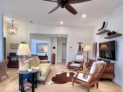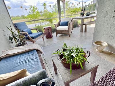 An absolute gem of a furnished seasonal rental! Located in the popular Lakefield South gated community this 2 bedroom, 2 bathroom plus office home has been completely renovated and furnished to a professionally elegant standard. With a serene sunrise lake view from the private screened patio, to the short golf cart path to WEF, this truly is the discerning equestrian's ideal winter residence. The kitchen is open plan with luxury appliances, bar stools and a large dining table. The windows are hurricane impact lending an air of serene peace to the spa-like decor. Brand new Prana mattresses grace the beds. Come live in a turnkey home near to everything! Located approx 150 yards from Wanderers Country Club, less than 1 mile to WEF. THIS HOME IS ALSO LISTED FOR SALE. ONLY 2 MONTH MIN!
