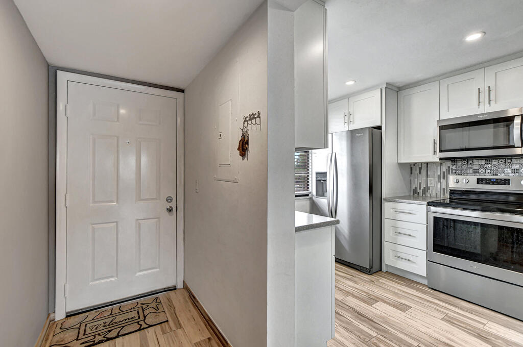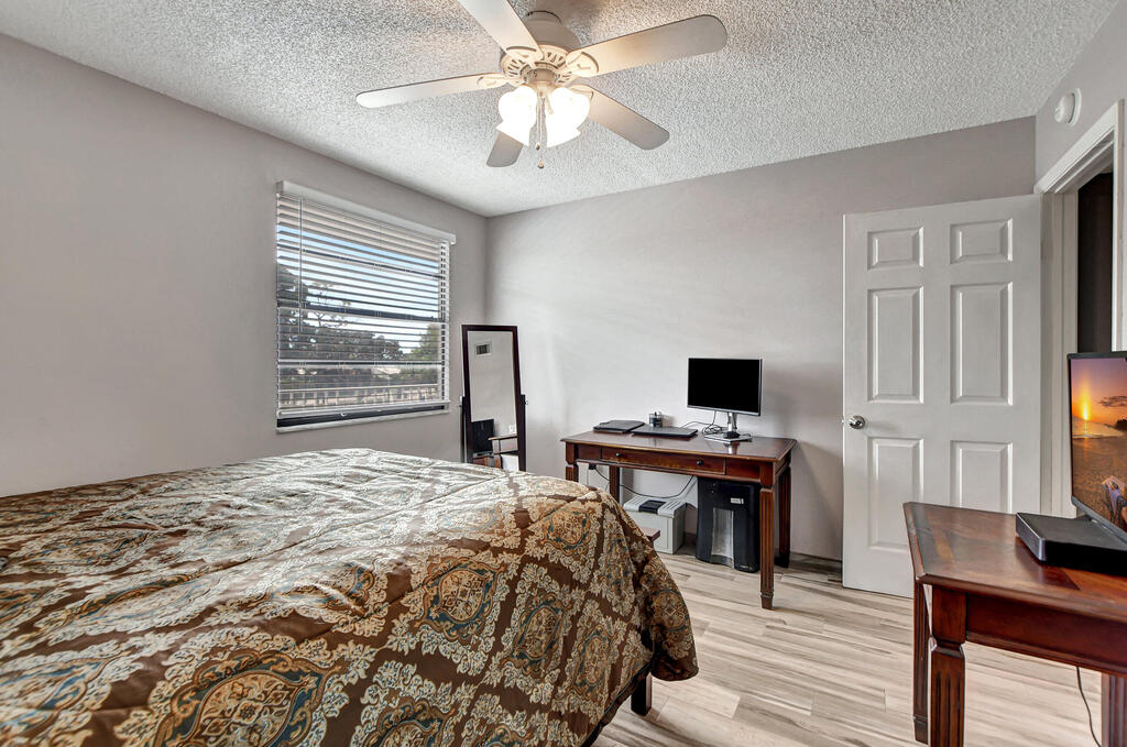 Welcome to your exquisite lakeside retreat in the heart of Central Boca Raton, where luxury meets tranquility! This stunning 2-bedroom, 2-bathroom condo boasts panoramic lake views from both the elegant living room and primary suite. Revel in the comfort of a brand-new A/C unit , complemented by an oversized washer and dryer for ultimate convenience. The residence features sophisticated ceramic tile throughout, a chef's kitchen adorned with custom cabinetry, and recessed lighting that enhances its charm. Both bathrooms and the kitchen have been tastefully updated, offering a contemporary flair. Freshly painted in calming neutral tones. Located within a community serving A-rated schools.