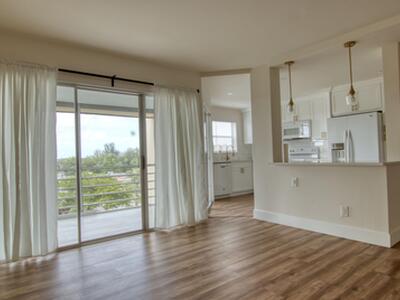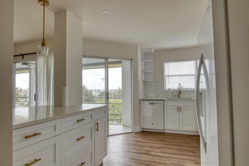 Luxurious renovated 2/2 PENTHOUSE CONDO with a 25' amazing, oversized balcony overlooking Via Poinciana and the club house. Enjoy watching all the activities going on & the beautiful sunset. Kitchen has been opened up drawing more natural sun light. Enjoy quartz countertops, brand-new cabinets throughout, luxury vinyl washer/dryer, subway tile back splash & beautiful appliances. This amazing location is minutes from Fla. Turnpike and I95, great shopping, restaurants, activities, airports, places of worship, medical centers, polo grounds & the wonderful beaches. Community Pool is just waiting for you with so many other amenities to choose from.