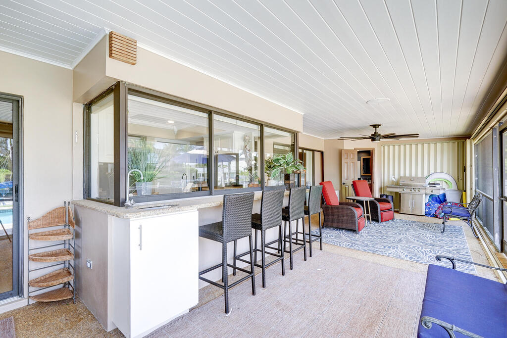 - Exterior FeaturesAuto Sprinkler, Covered Patio, Fence, Fenced Yard, Open Patio, Outdoor Shower, Screened Patio and Shutters